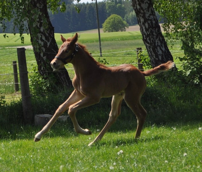 Name: Bossi (Bossa Malandro) Age: 6 years old Color: Dark Chestnut Height: Currently approximately 16.1 hh Training: Bossi has been in my possession since birth. He was backed at four years old and has always been in professional, horse-friendly training (full riding). He currently shows confidence at dressage horse class A level and is on the way to L* (for example, piaffe and passage already very secure). His three evenly good basic gaits (riding horse evaluation: 7.1, dressage horse class A: 7.28) and his lightness, seat comfort, and positive go make him an ideal partner for ambitious riders. With further training, he could also be used in M* level competitions. That was also my plan for him as a young horse. Temperament: In handling, Bossi is well-behaved, calm, and fearless — whether in the arena, on the riding ground, or in the field. Farrier, loading, competition routine, loading or waiting alone in the trailer are no problem for him. Additionally, he has a very people-oriented, affectionate character that brings joy every day. Bossi gets along well with other horses. So far, he shares a paddock with other geldings and is stabled in a box. Health: Bossi is clinically healthy and fully ready for riding and competition use. He has never been lame or seriously ill or injured. An up-to-date health certificate (AKU) with findings (chips: both hind legs left and right, medial and lateral) is available. I insured Bossi at three years old for surgery; this insurance can possibly be transferred. His regular, preventive care (e.g., dental, physiotherapy) is standard for me. Potential Uses: Bossi is versatile: he has potential in dressage, talent for jumping, and relaxed, confident cross-country riding — whether alone or in a group, at the front or behind. His dam, Dornröschen S (state premium mare), is successful in the competition sport: dressage L*/** (multiple wins) and M* placings. She has also competed in show jumping A level. Reason for selling: I am only selling Bossi because my professional circumstances are changing significantly. There is no rush, but I want him to find a home where he will be loved and where his qualities can continue to develop. Price: Reduced due to the findings on the X-ray. The price is negotiable; a suitable home is much more important to me. Getting to know Bossi: A trial ride is possible by appointment.