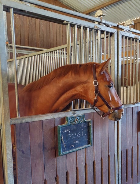 Nom : Bossi (Bossa Malandro) Âge : 6 ans Couleur : Fuchs foncé Taille : Environ 1,65 m (actuellement) Formation : Bossi est à mon possession depuis sa naissance. Il a été monté en licol à 4 ans et a toujours été en formation professionnelle adaptée à ses capacités (pleine monte). Il se montre actuellement sûr en dressage niveau A et progresse vers L* (par exemple, galop extérieur déjà très sûr). Ses trois allures de base régulièrement bonnes (note en équitation : 7,1, en dressage A : 7,28), ainsi que sa légèreté, son confort de selle et son attitude positive, en font un vrai cheval de rêve pour les cavaliers ambitieux. Avec une formation supplémentaire, il serait certainement apte à participer à des concours de niveau M. C’était aussi mon projet pour lui en tant que jeune cheval de relève. Caractère : En main, Bossi est calme, sûr de lui et sans nervosité – que ce soit en manège, sur la carrière ou en extérieur. La ferrure, le chargement, le quotidien en concours, comme le chargement ou l’attente seul dans le van, ne posent aucun problème. De plus, il a un caractère très proche de l’homme, affectueux, qui apporte de la joie au quotidien. Bossi s’entend bien avec les autres chevaux. Jusqu’à présent, il partage la pâture avec d’autres hongres et est en box. Santé : Bossi est en parfaite santé et pleinement apte à l’équitation et à la compétition. Il n’a jamais été boiteux ni malade ou blessé sérieusement. Un bilan radiologique récent avec résultats (chips : même membres arrière gauche et droit, medial et lateral) est disponible. Je l’ai assuré contre les opérations jusqu’à ses 3 ans ; cette assurance peut éventuellement être transférée. Ses soins réguliers prophylactiques (par exemple, soins dentaires, physiothérapie) sont pour moi une évidence. Possibilités d’utilisation : Bossi est un cheval polyvalent : potentiel en dressage, talent en saut d’obstacles, et aptitude pour le cross-country, en toute confiance, seul ou en groupe, en tête ou en retrait. Sa mère, Dornröschen S (étalonne prämierte), est une cavalière de compétition avec succès : niveau L*/** en dressage (plusieurs victoires) et placé en M*. En saut, elle a été classée en A. Raison de la vente : Je vends Bossi uniquement parce que ma situation professionnelle change fortement, sans urgence, mais avec le souhait qu’il trouve un foyer où il sera aimé et pourra continuer à développer ses qualités. Prix : Prix réduit en raison du résultat radiologique. Le prix est négociable, ce qui compte pour moi, c’est surtout qu’il trouve la bonne famille. Découverte de Bossi : Une séance d’essai est bien sûr possible sur rendez-vous. Pour plus d’informations, contactez M. Pieter Buitenhek, +49 (0)171 6041664.