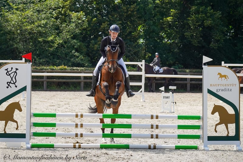 DSP Wallach „Follow your Heart“ aka Franky – 6 Jahre – Fürstenstern x Planitz Kategorie: Wallach | Alter: 6 Jahre | Rasse: Deutsches Sportpferd (DSP) | Stockmaß: ca. 170 cm Disziplin: Freizeit / Dressur / Springen Beschreibung: Leider muss ich mich von meinem Wallach Follow your Heart (Franky) trennen. Franky ist super brav im Umgang– freundlich, verspielt und unkompliziert. Er ist für jeden Spaß zu haben und möchte seinem Reiter gefallen. Obwohl er dressurbetont gezogen ist, zeigt er am Sprung deutlich mehr Begeisterung und Talent. Er wurde bereits auf Turnieren vorgestellt – sowohl in der Dressur als auch im Springen – und hat sich dabei stets brav, ausgeglichen und rittig gezeigt. Franky leidet an einer chronischer Uveitis (periodischer Augenentzündung). Die Schübe lassen sich gut managen und beeinträchtigen ihn reiterlich nicht. Ich wünsche mir für Franky ein liebevolles Zuhause bei Menschen, die ihm mit Ruhe, Geduld und Verständnis begegnen. Gern möchte ich ihn an einen erfahreneren Reiter verkaufen der ihn weiter fördert. Platz vor Preis Bei ernsthaftem Interesse oder weiteren Fragen gerne per Privatnachricht melden.