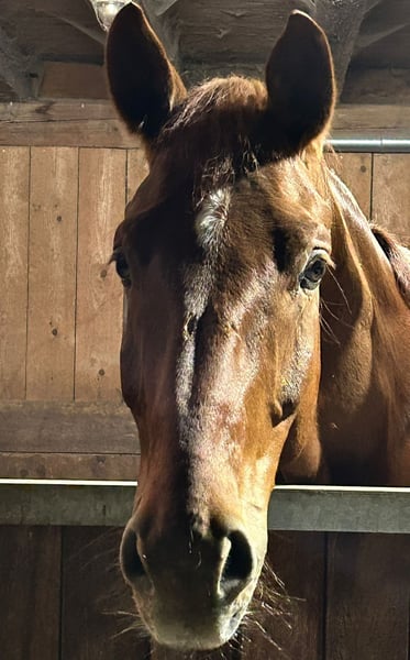 Fred is a large-built, lovable gelding who is gentle to ride and enjoys daily work. He has a wonderful temperament, is very people-oriented, and always behaves well. Fred shows signs of shivering, but this does not affect him when riding. For this reason, he is being offered at a significantly reduced price.