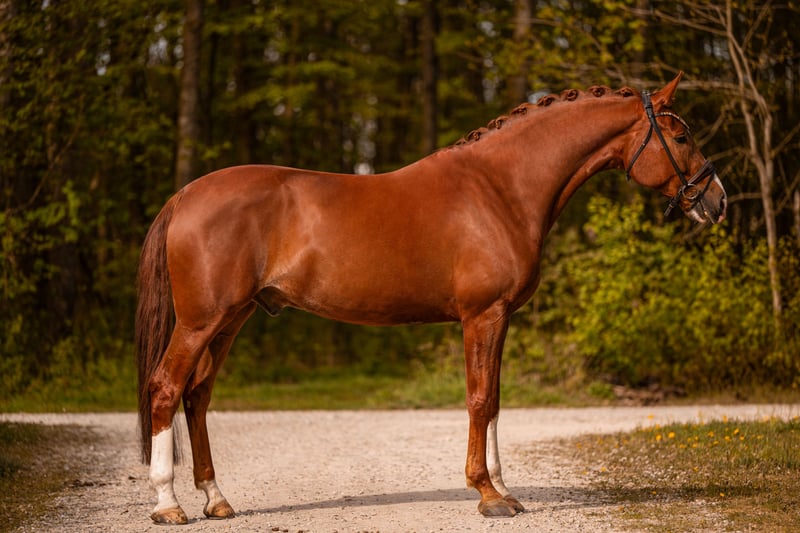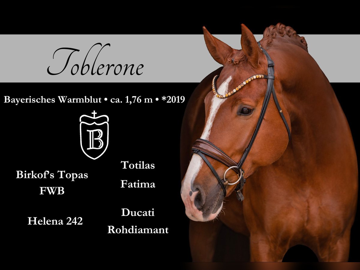 Liebe Interessenten, Für Terminvereinbarungen Probereiten senden Sie mir bitte eine WhatsApp. Für weitere Fragen bin ich tagsüber per WhatsApp erreichbar, telefonisch erreichen Sie mich am Besten zwischen 16 und 19 Uhr. Ich freue mich auf eine Kontaktaufnahme www.angelina-devittorio.de ⭐️Toblerone⭐️ Alter: 7 Jahre (2019) Größe:ca 1,76 m Abstammung: Topas x Ducati Ausbildungsstand: Dressurpferde L AKU: Gute Röntgenbilder von 3 j vorhanden Standort: bei Augsburg Zum Verkauf steht ein beeindruckender, großrahmiger Wallach mit viel Ausdruck und einem hervorragenden Bewegungspotenzial. Er verfügt über einen überragenden Schritt, Eine hervorragendeTrabmechanik mit viel Versammlungsbereitschaft und eine sehr gute Bergauf-Galoppade. Er bringt das Grundpotenzial für das ganz große Viereck mit! Toblerone wurde als Fohlen bereits als Siegerfohlen in München Riem ausgezeichnet und überzeugt seit jeher durch Qualität, Präsenz und Leistungsbereitschaft. Er wurde 3-jährig direkt vom Züchter (Birkhof) erworben und erhielt seine fundierte Grundausbildung. Aktuell befindet er sich auf solidem Dressurpferde L Niveau und zeigt hier viel Talent und Entwicklungsmöglichkeiten nach oben. Toblerone ist stets motiviert und lernwillig und zieht aufgrund seines Ausdrucks und Grundqualität alle Blicke auf sich. Kleinere Sprünge meistert er brav und zuverlässig, wobei sein Schwerpunkt klar in der Dressur liegt. Hängerfahren sowie der Umgang beim Schmied sind problemlos. Dieser Wallach ist kein Anfängerpferd. Er ist ein echter Charakter mit viel Sensibilität und Ausdruck. Sein Reiter sollte konsequent, einfühlsam und erfahren sein, um ihm die nötige Sicherheit und klare Führung zu geben. Für unsichere oder ängstliche Reiter ist er nicht geeignet. er ist niemals böse und hat keine groben Unarten aber testet seinen Reiter gerne einmal aus. Für einen ambitionierten Reiter, der Freude an einem leistungsbereiten, kraftvollen Pferd mit viel Entwicklungspotenzial hat, ist Toblerone jedoch ein absoluter Gewinn. Mit dem richtigen Reiter hat das Potenzial für das ganz große Viereck. Am Turnier war er aufgrund fehlender Ambitionen der Besitzerin noch nicht. Ein Pferd, das durch Qualität, Charakter und Perspektive überzeugt und seinem zukünftigen Reiter viel Freude im Sport bereiten wird. Er wird im Auftrag der Besitzerin inseriert, bei ernsthaften Interesse versende ich gerne die Telefonnummer der Besitzerin, um sich auszutauschen und einen Termin zum ausprobieren zu vereinbaren ⚜️Tel: 0171-3438949 ⚜️a.devittorio@web.de ⚜️https://www.ehorses.de/angelinadevittorio Facebook und Instagram Angelina De Vittorio