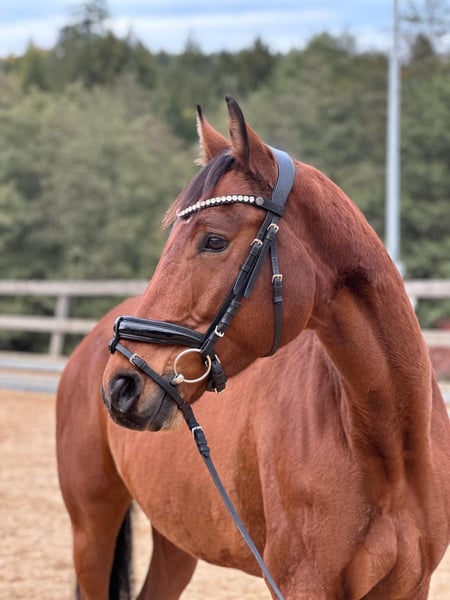 Dexter – Ambitious Show Jumper with Potential for the Grand Prix Scene Gelding | 7 years old | German Sport Horse | approx. 16.1 hh Pedigree: Dollar D'Or × Rodman Location: Michelstadt, Germany Price: €45,000 Directly from breeder and completely unspoiled Dexter impresses with his excellent attitude, rideability, and natural talent – a sport horse with a bright future, ready to tackle any height! This charming gelding is already placed at A** level (Show Jumping A**, Young Horse Jumping A*) and demonstrates his full potential in training: he confidently clears courses at L-level, with some jumps already at S** level. All his successes have been achieved under an amateur rider. His training emphasizes gentle, age-appropriate development. Already as a young horse in the building phase, he proves his exceptional willingness to perform and talent by easily jumping 1.60 meters in free jumping, motivated and with great self-drive. Sensitive to aids, always motivated, and equipped with plenty of go, Dexter aims to please his rider and approaches every obstacle with conviction. His ambition and eagerness to learn make him an ideal partner for ambitious riders seeking to progress in sport. He tackles every height without hesitation. A particular highlight is his very quick, powerful basic canter, giving him a clear advantage not only in competitions but also in tight turns and quick rides. Although his heart clearly lies in show jumping, Dexter is also excellently trained in dressage. He masters the basics such as rhythm and relaxation in all gaits, and he effortlessly performs flying changes and lateral movements, also in all gaits. In higher collection exercises, Dexter consistently demonstrates engagement. He shows talent and heart – and definitely has the potential to excel in high-level show jumping. For riders aiming high – with a partner who always gives his best. Dexter comes with a very good large pre-purchase exam (AUKU). Videos can be provided upon request.