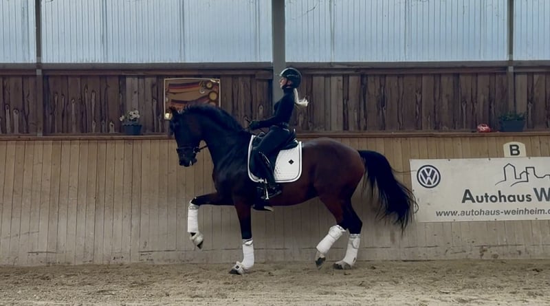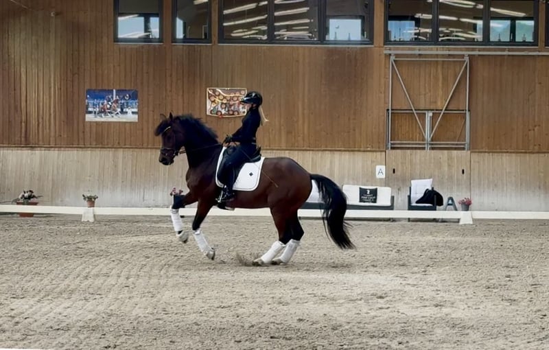 DSP Royal Heritage è figlio del sire di grande temperamento e maneggevolezza Royal Doruto, uno degli ultimi della celebre linea di Rubinstein. La "R" indica la rideability, e Royal Heritage incarna perfettamente questa qualità. Si distingue per la sua volontà di esibirsi e il suo carattere orientato alle persone; desidera sempre fare tutto nel modo giusto e piacere al suo cavaliere. Per queste caratteristiche, è adatto anche a cavalieri più giovani, meno esperti, o di età avanzata. Durante la settimana, è un vero e proprio talento per la dressage, mentre nel fine settimana adora fare uscite al sole. Royal Heritage, conosciuto anche come "Robbie", è stato stallone approvato nel 2020 e castrato all'età di quattro anni per favorire la sua carriera sportiva. Molto brillante nelle prove per giovani cavalli, nel 2024 è passato sotto la gestione della cavallerizza di successo Michele Schulmerig. L’anno scorso, la coppia ha raggiunto il suo massimo traguardo, conquistando il titolo DSP a Darmstadt Kranichstein. Questa vittoria gli ha conferito anche il titolo di DSP, rendendolo il campione DSP Rising in classe avanzata. Attualmente, Robbie si sta preparando per la classe S** e già mostra ottimi progressi in piaffe e passage. È possibile anche un trasferimento internazionale, supportato dal proprietario. Video su richiesta al numero +49 174 2117400.