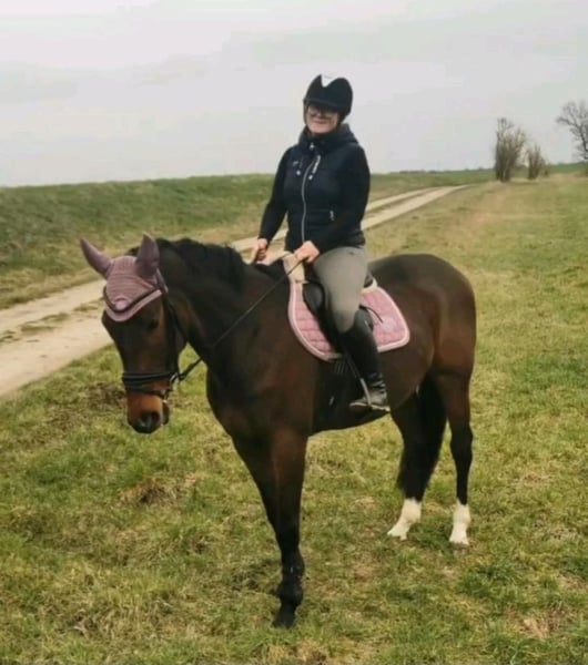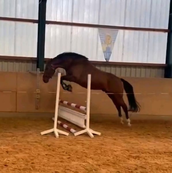 Seabiscit RT Stockmaß: 1,70 Am 30.04.2018 geboren Deutsches Sportpferd Wallach Ausbildungsstand: gut geritten, ist Kreuze und Steiler gesprungen, macht gern Freispringen. Keksi hat auf jedenfall Potenzial für höhere Klassen im Springsport. Aber auch in der Dressur macht er ein schönes Bild und hat dort viel Potential. Er geht gern ins Gelände und ist dabei artig. Er zeigt keinerlei Unarten wie buckeln, beißen, treten oder steigen. Im August 25 wurde er zum Check up in einer Klinik von oben bis unten durch gecheckt und ist gesund. Er ist nicht für Anfänger geeignet und eine absolute Sportskanone und möchte immer was tun. Im Umgang ein absoluter Schatz und unkompliziert und brauch viel Liebe. Er ist ein Spielkind und Herdenverträglich, da nimmt er eher eine Rang hohe Position ein, ist dabei lieb aber bestimmend. Impfungen hat er Influenza, Tetanus, West Nil und Herpes. Zähne wurden im November erst gemacht. Er wird regelmäßig alle 6 Wochen dem Hufschmied vorgestellt und ist 4 Fach beschlagen, dort zeigt er sich artig. Seabiscit fährt artig Hänger. Auch bei Auswärtsfahrten zeigt er sich stets lieb. Ein Springsattel kann gegen Aufpreis übernommen werden. Mir ist es wichtig, dass er ein schönes Zuhause bekommt. Er möchte jeden Tag raus und ist kein reines Boxenpferd. Ein Platz mit täglichem Paddockgang, Weide oder einen Offenstallplatz würde ich mir für ihn wünschen. Platz vor Preis. Um Reittourismus vorzubeugen werden 30€ erhoben. Diese werden beim Kauf verrechnet. Bei Fragen kontaktieren Sie mich jederzeit!