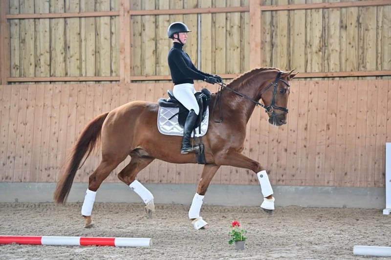 We are selling our 7-year-old typey, 1.70m tall gelding Fürst Heidelberg with very good basic gaits. Fürsti was born and raised on our farm and was allowed to grow up on large pastures for the first few years of his life. Since birth, he has been regularly wormed, visited the farrier, had dental treatment and been professionally supplied with minerals. He has also received frequent osteopathic treatment. Fürsti has already had some successes, winning the Havelland free-running competition as both a 3-year-old and a 4-year-old. He was also presented in novice class dressage tests for young horses last year, where he achieved a win and other placings. He is now diligently learning L and M level lessons, which he accepts very well. Fürsti is a very people-oriented horse who needs a caregiver with whom he can work and cuddle extensively. He is also very willing to work and easy to ride and gives all riders a great riding experience. He is also easy to forge and load. Please send inquiries to: Tel.: 01739343732