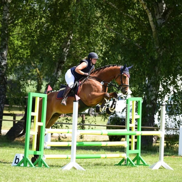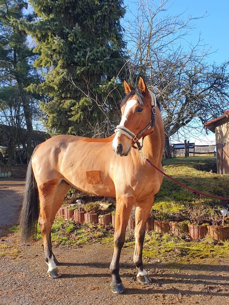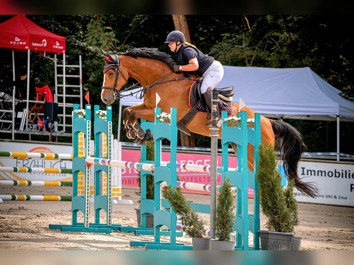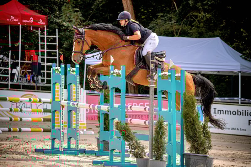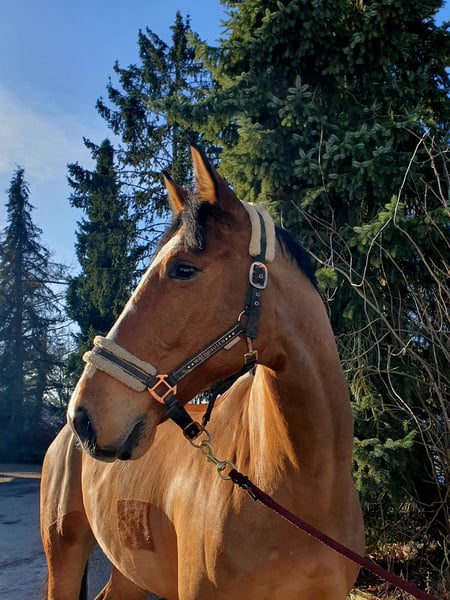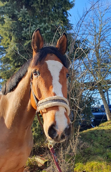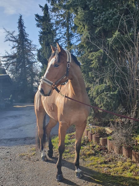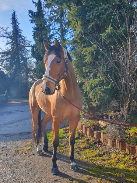Zum Verkauf steht ein großrahmiger, sporttlicher, sehr schicker und hübscher Wallach. Er war Championatsfohlen und besticht neben seiner Zuchtlinie auch durch seinen guten Charakter. Aufgrund seiner Größe und seinem eher etwas schüchternen Wesen wurde ihm in der Ausbildung viel Zeit gelassen, wodurch er erst später in den Turniersport einstieg. Springpferde A** bis 2 Platz plaziert, Springpferde L mit guten Noten bis 7,9, auch auf großen Plätzen gegangen. Er ist im Umgang ein absoluter Schatz, verschmust, anhänglich und menschenbezogen. Am Anfang kann er bei fremden Menschen etwas zurückhaltend sein, aber das legt sich sehr schnell wenn man liebevoll mit ihm umgeht. Keine Unarten im Umgang, wird von Kindern auf die Weide gebracht/ geholt und geputzt. Er ist gut dressurmäßig gearbeitet und ausgebildet, trotz seiner Größe schön und fein zu reiten mit guten GGA. Daher kann ich ihn mir auch gut in der Dressur bzw. Beidseitig einsetzbar vorstellen. Manchmal kann er ein bisschen frech sein ( kein Bocken, wegrennen oder ähnliches), ist aber immer gut zu Händeln, was naturgemäß seinem Alter noch entspricht. Daher wäre ein ruhiger, sicherer und konsequenter Reiter/Reiterin ideal für ihn, der/die ihm in neuen Situationen Sicherheit gibt und ihn in seiner weiteren Ausbildung fördert. Er kennt natürlich Reithalle, Außenplatz, Führanlage, Gelände ( alleine und zu zweit), sowie Paddock und Weidegang in der Gruppe. Er ist sehr sozial und verträglich. Daher ist uns ein Zuhause wichtig, indem er auch weiterhin täglich Weide oder Paddockgang, am liebsten mit Kumpels oder Kumpelinen hat. Keinerlei Probleme beim Hufschmied, LKW fahren auch problemlos. 5 jährig wurde eine AKU ohne Auffälligkeiten gemacht. Er wird nur in allerbeste Hände verkauft!