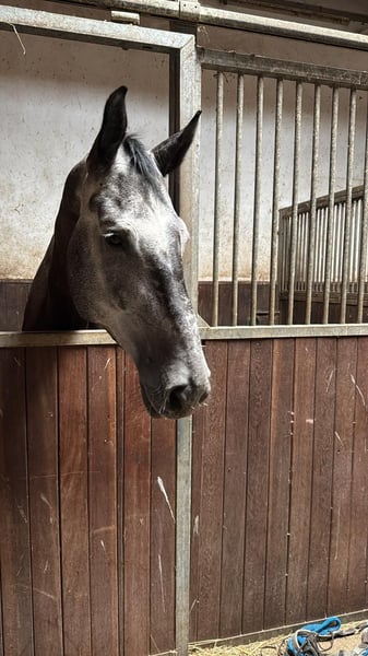 Large-framed 7-year-old show jumping gelding – 1.05 m placings, calm temperament For sale is a 7-year-old, very large-framed show jumping gelding (approximately 183 cm) with a calm, balanced character. He is placed up to 1.05 m and demonstrates ability and awareness over fences, especially during free jumping. The gelding is more relaxed than excitable, pleasant to handle, and not nervous. He is suitable for calm riders seeking a steady-minded horse without competitive pressure. ⚠️ Note: The gelding exhibits shivering, which is currently being managed. He is in training and described honestly – further information is available upon personal contact. Price negotiable.