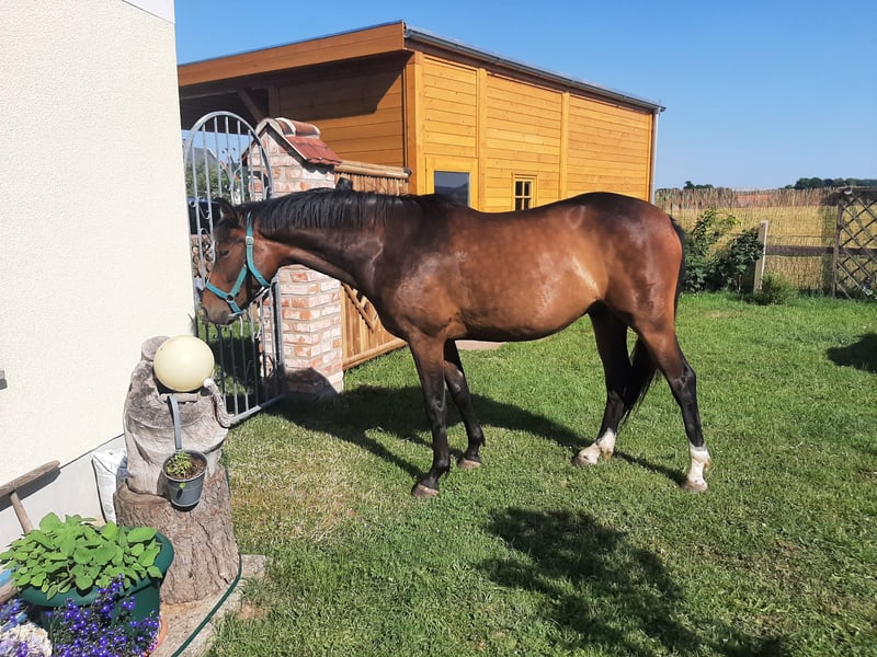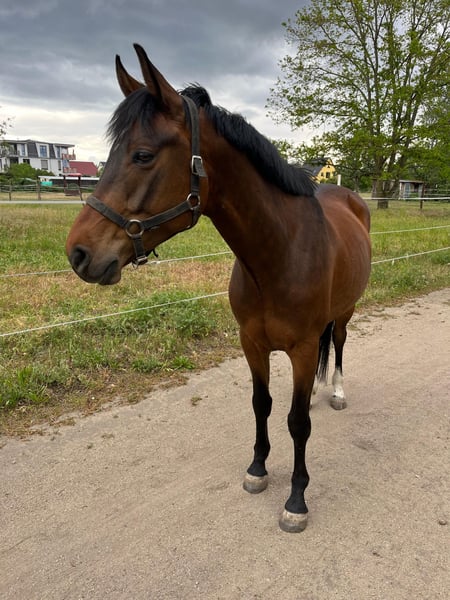 Hallo, Ich habe mich dazu entschieden, mein Pferd an die passende Person zu verkaufen. Es handelt sich um ein achtjähriges Deutsches Sportpferd. Ihm liegen sowohl Dressur als auch Springen, wobei er reines Springblut hat. Er wurde 2017 geboren und bringt interessantes Blut aus der Zucht mit. Leider hat er seit 2022 die Krankheit Hufrehe. In den letzten zwei Jahren hatte er aufgrund guter Haltung jedoch keine Schübe oder gar Probleme mit Rehe. Er ist voll belastbar und kann seit zwei Jahren wieder bewegt werden. Leider fehlt mir die Zeit, ihm gerecht zu werden. Daher hat er seit 2 Jahren den gleichen Ausbildungsstand auf A-Niveau. Er lässt sich sehr angenehm sitzen und reiten. Er ist ein schlaues Pferd mit viel Potential, daher nicht für Anfänger oder Schulbetrieb geeignet. Wenn du gern weitere Infos sowie Bilder möchtest, freue ich mich über deine Kontaktaufnahme! :)