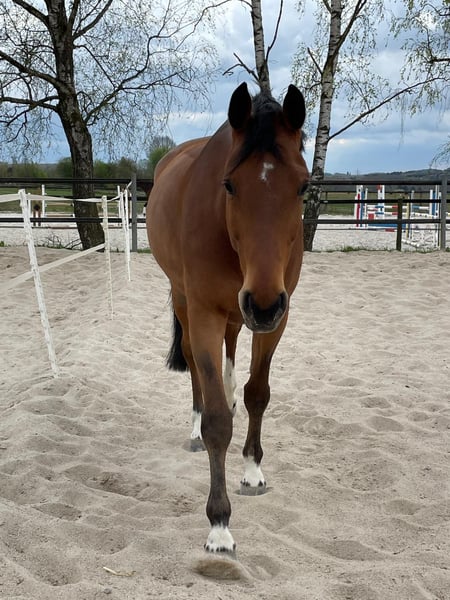 A 9-year-old family horse is looking for a new home. We are seeking a loving home for our 9-year-old gelding Casper, where he won't just be "ridden along," but will receive the attention he demands daily. Casper has been ridden by both our daughter and my husband. He confidently guided our then 14-year-old daughter in show jumping and has achieved placings in L-class show jumping competitions with my husband. He is a true all-rounder: whether on the arena, enjoying a relaxed hack, or simply taking a break in the pasture to unwind. Sport is not his top priority—what matters most are the daily moments of interaction and attention. We are giving him up with a heavy heart, as we wish to pursue further sporting development and find him a home where he will continue to be appreciated as he deserves. Casper is a loyal companion who brings a smile to your face with his cheerful disposition every day. If you are genuinely interested and have further questions, I’d be happy to tell you more about him.