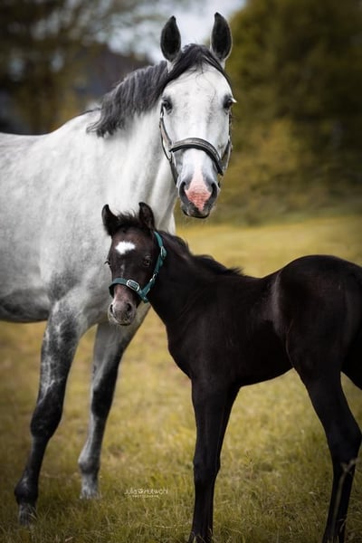 In beste Hände geben wir unsere Bella ab. Sie ist tragend für 2026 vom Landbeschäler Destano. Bella ist optisch etwas ganz Besonderes und besticht durch ihre enorme Bewegungsqualität. Im Umgang ist sie ein absoluter Schatz. Immer lieb und sozial verträglich. Bella hat ein Fohlen von FS Mr Right aus 2023. Die Stute wird demnächst angeritten und kann ebenfalls besichtigt werden. Bella nimmt leicht auf und die Geburt verlief absolut komplikationslos. Sie ist eine tolle Mutter und geht in dieser Rolle auf. Deswegen haben wir sie 2025 wieder besamen lassen. Wir haben Bella seit 2017 und Sie war nie lahm oder krank. Bella kann auch geritten werden, hier benötigt sie aber einen ruhigen und sicheren Reiter, da sie beim Reiten sehr sensibel ist. Bella wurde einmal Dressurpferde A vorgestellt. Die Prüfung beendete sie mit einer 7,2. Auf dem Turnier und auch auf der Fohlenschau zeigte sie sich selbstbewusst und unkompliziert. Bella ist Westfälische Verbandsprämienstute. Wir geben sie nur aufgrund unserer zahlreichen Nachzucht ab und nur in beste Hände.