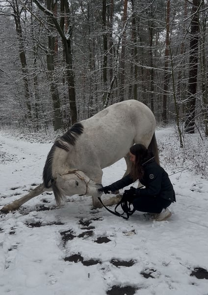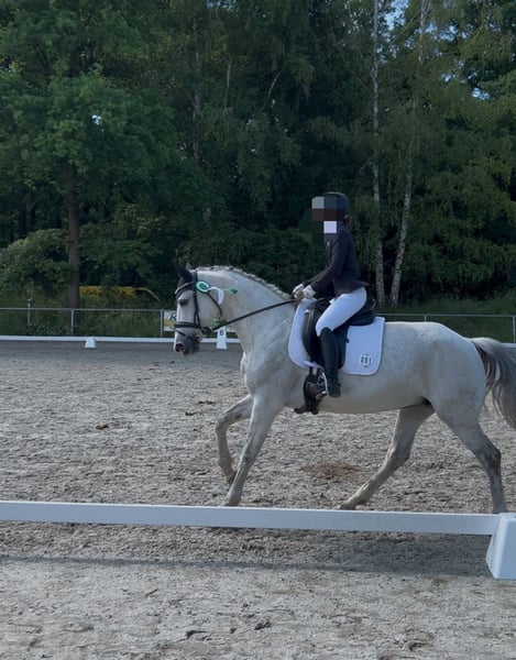 Dreamy grey mare with heart and mind – Lenira is looking for a loving home For sale is our beautiful grey mare Lenira – a true heart horse that impresses with her loving character. She has a good breeding line with successful offspring. Placements: Placed in A and E dressage Field of use: Leisure / light dressage ground work, breeding Lenira is an absolutely sweet, people-oriented mare who always tries to please her rider. She is child-friendly, road-safe, and can be easily handled by beginners. She also shows herself to be social and balanced in her interactions with other horses. She is familiar with both box and open stable housing. Lenira knows some L-level dressage exercises, is placed in A and E, and has always shown a willingness to work under saddle. She particularly enjoys ground work and tensegrity training, where she can fully utilize her fine body awareness and eagerness to learn. In jumping, she displayed good technique and a lot of joy; however, due to diagnosed cervical spine osteoarthritis, she should only be used for light dressage or as a leisure horse. She has already had three healthy foals. Her good lineage continues to make her interesting for breeding. The sweet girl was purchased directly from the breeder and has been further trained in loving hands – hence no previous owners. She loads calmly and easily and remains relaxed while traveling. Trail rides are her favorite – whether alone or in a group, Lenira is fearless and reliable. Lenira is a true heart horse that is very dear to us. We wish for her a home where she will be appreciated as a family horse, leisure partner, or in light dressage work. She is ideally suited for amateurs, re-starters, or as a loving companion for children. She will only be placed in good hands and no dealers! If you are genuinely interested, we look forward to hearing from you.