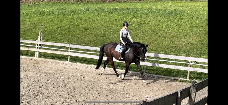 Our 10-year-old mare Destiny is looking for a loving, suitable home with experienced horsepeople. She is a charming horse – sensitive, intelligent, and curious – and brings an incredible amount of joy. I have known her since I was 15, having taken her over from our stable owner, and she has been a constant companion ever since. As I am now moving abroad, it is incredibly difficult for me to find a new home for my beloved Destiny, but I wish for her to find someone who loves and appreciates her just as much as I do. In handling, Destiny is a truly reliable partner. She is well-versed in grooming, hoof care, ground work, and lunging. She is familiar with dogs, playful children, and even tractors pose no problem for her. She feels most comfortable in a pasture-based environment or in a paddock box with plenty of turnout, as movement and herd life visibly make her happy. Under saddle, Destiny demonstrates her versatile talent: In dressage, she is solidly trained. She walks and trots calmly; when asked to canter, she sometimes tests her rider with a small buck, but with experience and patience, this can be managed well. Even my mother, who is not an experienced rider, can ride her in walk and trot without issues. She enjoys jumping, skillfully sorting her legs and requiring minimal support. Flying changes are no problem for her either. She is also accustomed to riding out. Although she hasn't been regularly ridden outdoors recently, she quickly regains confidence with the right company. She was also successfully shown in show jumping competitions in the past. However, I do not have the opportunity to pursue this further, and it is not my priority. Destiny is seeking a rider with sensitivity, love, and experience – someone who is firm but gentle. Whoever wins her heart will gain a loyal partner who works enthusiastically and makes her humans very happy. She will only be placed with someone who provides her with a proper, loving, and respectful environment. Saddle, bridle, and additional equipment are included if desired.