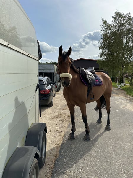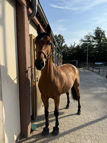 Due to equestrian commitments, I am reluctantly parting with my wonderful mare, Candela. I purchased her directly from the breeder in 2022. Candela is a 10-year-old German sport horse and has been successfully presented in show jumping at the A** level. Over the past year, she has been jumped only infrequently due to my health issues and has only been shown at competitions sporadically. I would like to sell her as a high-quality leisure horse. Candela is very well-behaved and has no vices. However, she requires a confident rider as she is very sensitive to ride and needs to be worked with. In September 2022, she underwent surgery on the suspensory ligament on her left hind leg. The leg has since been regularly monitored by a veterinarian via ultrasound, showing no restrictions. In January 2025, she had a slight irritation of the tendon sheath on her right hind leg, resulting in a small windgall (ultrasound images available). She is absolutely good with the farrier and loading. Naturally, she is regularly vaccinated, dewormed, and has been seen by the dentist. I wish for her to have a 5-star home, with daily turnout with others or even a place in an open stable. Currently, she is in a herd during the day in the pasture and at night in a paddock box; she is also familiar with open stabling. Due to her lineage, she is also interesting for breeding. A comprehensive veterinary examination with X-rays from July 2022 shows no findings. Suitable equipment can be provided for an additional fee. To avoid riding tourism, a fee of €30 will be charged for trial rides, which will be credited towards the purchase.