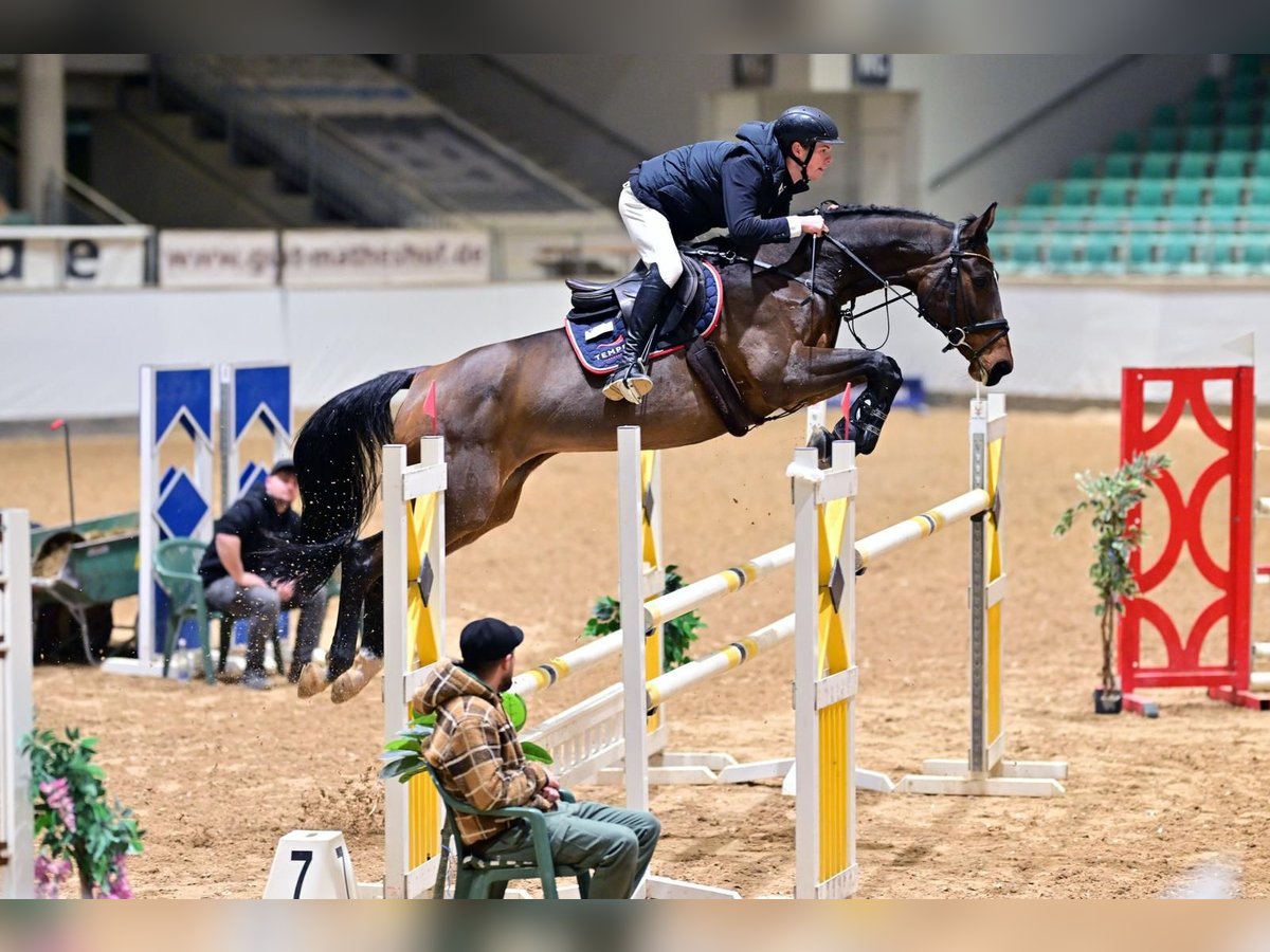 Kir-Royal is a 10-year-old bay German sport horse mare standing at 16.3 hh. She impresses with her intelligence, diligence, and attentive nature. In daily work, she demonstrates motivation, rideability, and a pleasant demeanor. The mare has achieved multiple top placements up to M** level and has competed successfully at S*. She is characterized by her caution, good overview, and willingness to perform over fences. Thanks to her balanced temperament, she can also be ridden daily by children without any issues.