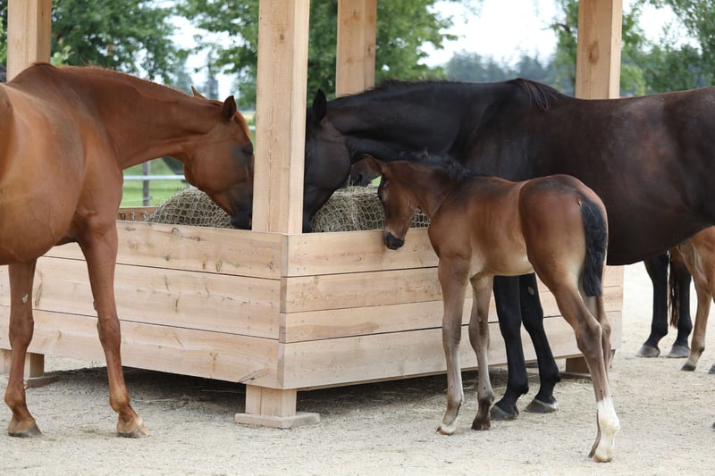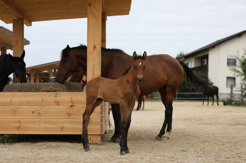 We breed dressage horses - with our exceptional husbandry we create perfect conditions for healthy and above all clear horses. All our broodmares are used to foaling in the middle of a large herd. Thus, from the first hour of life, the foals are part of a herd that always moves in the order of 20 -30 horses. With us you can buy foals directly and leave them here for breeding. You can also buy young growing horses from yearlings to 4-year-old raw horses at any time. You can also find what you are looking for here for top broodmares. Our ridden horses for sale are always located in training stables selected by us at various locations. Just ask. Currently we offer in free sale: 10 years. Mare by BENETTON DREAM x STEDINGER, 1,70 m, dark brown 6 years. gelding of DE NIRO x SIR DONNERHALL, 1.80 m, Rappe 4 years. gelding by BUCKINGHAM x FLORENCIO, 1.70 m, brown 3 years. gelding by DON ROYAL x BENETTON DREAM, 1.64 m, dark fox 3 years. gelding by DON ROYAL x SANDRO HIT, 1,64 m, dark brown 3 years. gelding by BENETTON DREAM x FLORENCIO, 1,64 m, fox with 4x white 2 years. Mare on FONQ x SIR DONNERHALL, 1,66 m, dark brown 2 years. Stallion of DON SCHUFRO x AMPERE, dark brown 1 year. Stallion by FLORICELLO x BENETTON DREAM, dark brown HF by ESCOLAR x AMPERE, Dark Fox SF by SKY x FORENCIO, Dark Fox Foals 2023 we expect from VA BENE, ESCOLAR, KINGSTON, FLORICELLO, ELEMENT OF CRIME. Broodmares purchased from us can continue to be bred and managed by us. In addition, we produce SOLID WOOD HAY RACKS for modern open stalls. Both for cuboid and round bales. For sale and also for leasing. If you are interested in any kind, please contact us directly by phone: 0172 - 839 66 50 - Rainer Lechl.