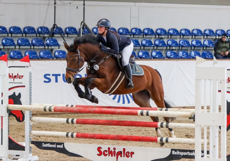 Verkaufe deutsches Sportpferd – elegante Stute, geb. 2013, braun, Stockmaß 165 cm Unsere Stute Carla aus eigener Zucht wurde bis S*-Springen vorgestellt und ist bis M** platziert. Sie ist sehr brav im Umgang und wäre auch für Kinder bzw. ambitionierte Nachwuchstalente geeignet. Ins Gelände lässt sie sich problemlos reiten - sowohl in der Gruppe als auch alleine. Carla hat bereits ein gesundes Fohlen zur Welt gebracht. Aus Zeitmangel ist sie in gute und fördernde Hände abzugeben. Bei Interesse gerne auch über WhatsApp. Videos auf Anfrage