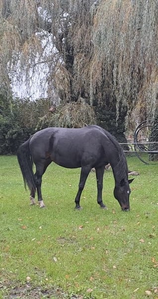 German Sport Horse Mare "*Jona*" (14 Years) For sale is the dark brown German Sport Horse mare *Jona* (14 years old). She impresses with her elegant conformation, her charisma, and her versatility. ✨ *The Most Important at a Glance:* • awarded as a breeding mare, papers available • has already produced two healthy foals • currently the mother of a typy colt (Capitano Moritzburg offspring, 5 months old) 🏇 *Usage & Character*: Jona is no longer intended for active sport but is excellent as a *valuable breeding mare* or a characterful *leisure horse with personality*. Due to her strong character, she requires an experienced, assertive rider – *not suitable for beginners*. *Further Info*: • barefoot, well-behaved with the farrier • currently in open stable housing • ridden for leisure purposes • reliable in the field and a true dependable horse 🌿 *Special Feature*: Jona combines charm, charisma, and quality. She offers a great opportunity for both breeders and experienced riders. 📩 If you are interested or have further questions about the foal, I look forward to receiving a message.