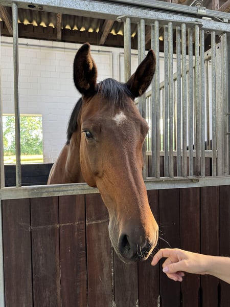 For sale is our breeding mare Danaé, born in 2011, with an excellent pedigree (Desperados x Stedinger). The mare has very good basic gaits and is versatile, as there is also show jumping bloodlines in her pedigree. In her younger years, she was successful in sport herself. At age 6, she won internationally in eventing (CCI2*) and also achieved high placements in dressage competitions up to L-level as well as in jumping up to A-level. She has also proven herself as a broodmare: 1. In 2022, she produced a fantastic foal (via embryo transfer) by Follow Me OLD. 2. In 2025, she will have another high-quality foal by Chubakko. Danaé is a reliable and caring mother mare, foals without issues, and takes very good care of her foals. In daily handling, she is well-behaved and uncomplicated. The mare can also be ridden recreationally. We look forward to hearing from you if you are interested.