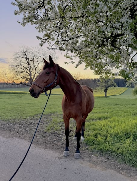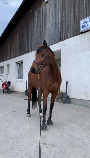 For sale: German Sport Horse German Sport Horse | Mare | Born 2009 | 17.3 hh | Bay With a heavy heart, I have decided to find a suitable new home for my beloved mare. Born in 2009, approximately 17.3 hh tall, she is a German Sport Horse with an exceptional character. This decision is far from easy, as she is much more than just a horse – she is a true heart horse that leaves a lasting impression. She has a friendly, honest nature, is very human-oriented, and always strives to please her handler. She is never malicious, consistently respectful, and pleasant to handle, with a balanced, calm temperament. In daily handling, she is absolutely well-behaved: halter-trained, easy to load and farrier-friendly, calm during grooming, and reliable in any situation – she can be led and cared for effortlessly even by children. She also performs well in the field, whether alone or in a group, remaining calm and confident. She has been regularly lunged, ridden, and engaged in ground work, which she clearly enjoys. She is very eager to learn, works gladly with her handler, and is perfectly suited as a leisure partner for someone who values a trusting relationship over competitive ambitions. Health-wise, she is fit, free of eczema, regularly vaccinated and dewormed. Over the years, she has developed a chronic hoof capsule issue, which we manage very well. This has been regularly checked and treated by the veterinarian, so we rarely notice any restrictions in daily life. Her equine passport is of course available. She is familiar with both open stable and box with turnout and gets along well with other horses. I am offering her only because my personal circumstances have changed, and I can no longer give her the time and attention she deserves in the long term. She should find a loving new home where she can settle permanently – as a partner, not just a sports tool. She will only be placed in caring, horse-friendly hands – the well-being of the horse is more important to me than the price. She is located in 75245 Königsbach-Stein and can be visited by appointment. If you are genuinely interested, I look forward to hearing from you.