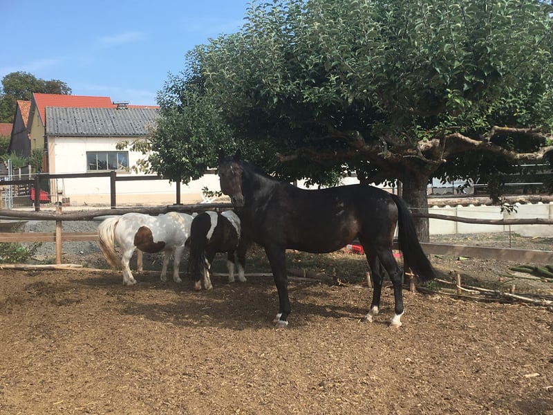 Verlasspferd in beste Hände abzugeben Aus persönlichen Gründen überlege ich, meine Stute in allerbeste Hände abzugeben, da ich ihr zeitlich einfach nicht mehr gerecht werde. Kein Notverkauf! Sie ist ein: • deutsches Sportpferd (springbetont gezogen) • BJ 2008 (18 Jahre) • ca. 1,60 m Stockmaß • dunkelbraun • zu jeder Zeit umgänglich • klar im Kopf und gut handelbar • keine Unarten, kein Stutengehabe • barhuf • kein Gewichtsträger Unter dem Reiter ist sie eine echte Lebensversicherung, vorausgesetzt, man bringt selbst Ruhe und klare Nerven mit. Sie hat ein gutes Go, macht viel Spaß und ist ein ehrliches, motiviertes Pferd. Ich wünsche mir für sie einen Menschen, der sie lieb hat und Freude an der gemeinsamen Arbeit hat – sei es Bodenarbeit, entspanntes Ausreiten, gemeinsame Weiterentwicklung im Reitunterricht oder auch einfach mal spazieren gehen. Sie zeigt außerdem Talent am Sprung und macht dabei viel Spaß. Sie wurde jedoch nie regelmäßig im Springen gefördert, da sie vor ca. 9 Jahren einen Hufreheschub infolge falscher Fütterung im damaligen Stall hatte. Dieser verlief ohne Komplikationen (KEINE Hufbeinabsenkung, Winkel oder Verdrehungen) und sie ist seither vollkommen beschwerdefrei. Aus Rücksicht darauf wurde sie nicht übermäßig durch Springarbeit belastet. Im Sommer kann sie auf die Weide, sollte jedoch sorgfältig angeweidet werden. Aufgrund der Vorbelastung ist sie kein Pferd für 24/7 Weidehaltung. Sie ist gut freizeitgeritten, sehr fein an den Hilfen und befindet sich auf Ausbildungsniveau E/A. Gesundheit & Pflege: • regelmäßig dem Hufschmied vorgestellt • regelmäßig geimpft • jährliche Zahnkontrolle • jährliche Sattelkontrolle durch den Sattler • 2-3 x jährlich Physio/Osteo Kontrolle Sie wird inklusive Zubehör abgegeben (nach Absprache), darunter Dressursattel (Sommer, 17 Zoll), Trense, Satteldecken, Putzsachen, Gamaschen sowie Decken. Ich wünsche mir für sie ein Zuhause mit artgerechter Haltung (keine reine Boxenhaltung), bevorzugt Offen- oder Aktivstall, sowie Menschen, die um die Verantwortung eines Pferdes wissen, diese übernehmen möchten und über entsprechende Erfahrung verfügen. Die Abgabe erfolgt ausschließlich in beste Hände und mit Schutzvertrag. Bitte nur ernstgemeinte Anfragen. Probereiten bei Sympathie jederzeit möglich. Ich bitte um Verständnis, dass für ein Probereiten 30 € anfallen, die bei Kauf angerechnet werden. Preis: 5.00€ VB Zubehör: Dressursattel 17 Zoll, Trense, Satteldecken, Putzsachen, Gamaschen und Decken können gegen Aufpreis übernommen werden (Preis nach Absprache). Bei ernstgemeintem Interesse oder Fragen gerne jederzeit melden. Keine Abgabe an Schulbetrieb. Händleranfragen werden nicht beantwortet!
