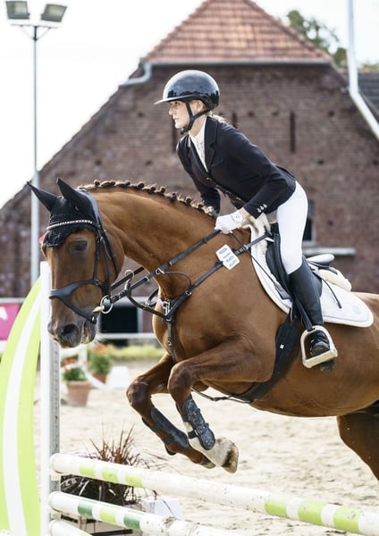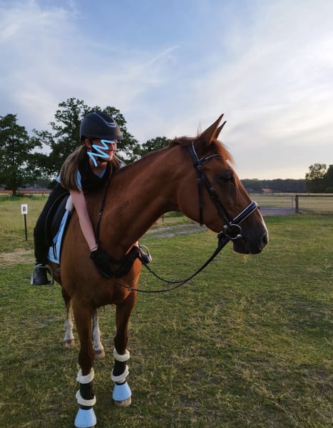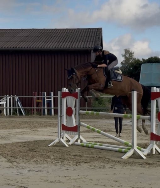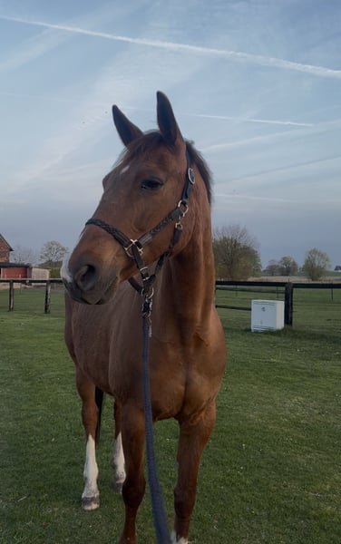 With a heavy heart, we have decided to find a new, suitable home for our somewhat limited riding mare, Flash. Flash is approximately 16.1 hands tall, has competed successfully in show jumping up to class E, and is in training up to A/ L height. She possesses an interesting dressage pedigree and good basic gaits, making her also quite appealing for breeding purposes. Pedigree: Her sire is the Oldenburg D’Amour, out of a Saxon riding horse mare. Her dam also has in her lineage Dream of Heidelberg, Donnerschlag, and Donnerhall. Due to a condition in her right front limb (sesamoid bone), Flash is currently not fully rideable. She is, however, currently sound when free-running. The injury has been treated but has not fully healed. Therefore, we are intentionally seeking a home where she will be truly valued. She comes with the following qualities: - Absolutely gentle in handling - Load and farrier friendly - Knows children, dogs, and road traffic - Attentive yet fearless - Very compatible within a herd - Suitable for children During the summer, she lives with us on pasture 24/7, and in winter, she stays in a box at night. We are happy to continue this management. She is also familiar with open stable systems. Flash is not a “rescue case” – we are taking our time to find the right home, so quality comes before price. She is a family member to us and will only be placed in the best hands. If you are looking for a wonderful horse to give a loving home, we look forward to hearing from you. AKU available (almost 3 years old).