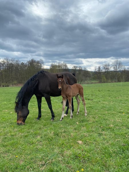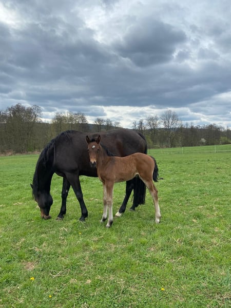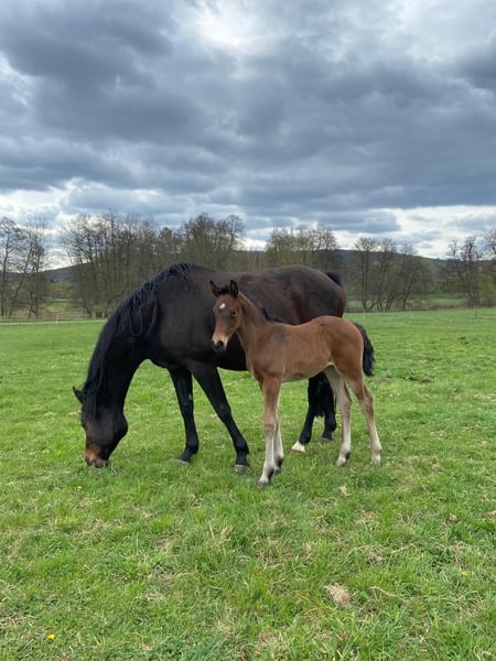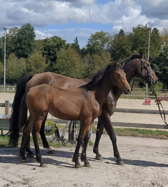 Aus eigener Zucht bieten wir hier ein Stutfohlen mit korrektem Fundament und einem tollen Charakter. Sie hat 3 gute und raumgreifende GGA. Sie kennt Halfter und kennt den täglichen Umgang und den "geführten" Gang zur Koppel. Vater Impressiv VDL kann sich mit einem Pedigree ausweisen, dass viele erfolgreiche Sportpferde vorweist. Die Mutter lief erfolgreich bis Springpferde L.