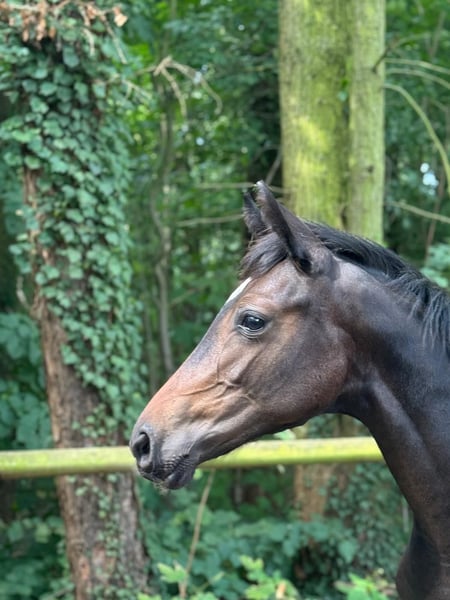 **Annonce de vente : Cheval de sport allemand** À vendre, en raison d'une réduction de l'effectif, un prometteur poulain femelle brun foncé de Belantis II - Va Bene, né en février 2025. C'est un cheval de sport allemand qui montre déjà un grand potentiel pour le dressage. La jument se distingue par son expression élégante et ses mouvements harmonieux. Elle est douce au travail et a obtenu lors de l'examen des poulains une note de 8 pour le type, 7,5 pour l'extérieur et 8 pour le mouvement. Pour toute question ou pour plus d'informations, je suis à votre disposition. Les visites sont possibles sur rendez-vous. Nous attendons votre demande avec impatience !