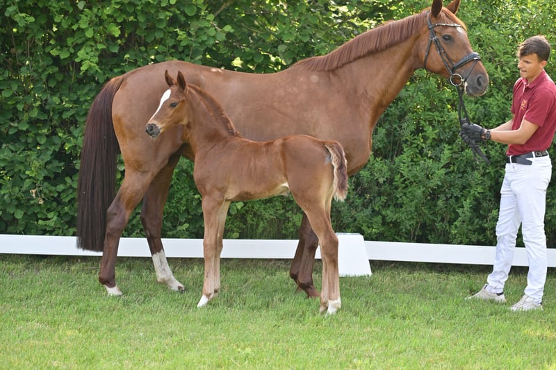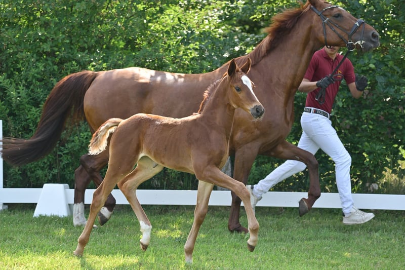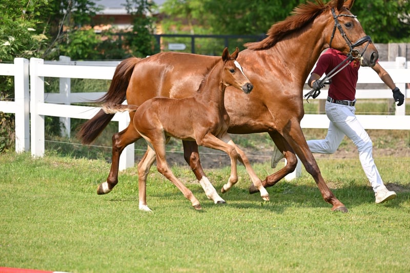Zum Verkauf steht ein hochwertiges Dressur-Stutfohlen des Jahrgangs 2025 mit erstklassiger genetischer Ausstattung. Die dunkelfuchsfarbene Barletta B überzeugt durch einen modernen, eleganten Typ, viel Ausdruck sowie sehr gute Bewegungsanlagen. Bereits als Fohlen präsentiert sie sich mit natürlicher Balance, guter Schulterfreiheit und aktiver Hinterhand – Eigenschaften, die eine vielversprechende Perspektive für Dressursport und Zucht erkennen lassen. Auf der Fohlenschau erhielt Barletta B Höchstnoten und wurde ausgezeichnet als Prämien- und Championatsfohlen. Abstammung Vater: Bonds Bonds zählt zu den führenden Dressurnachwuchsvererbern Deutschlands und führt die FN-Zuchtwertschätzung an. Er war selbst Körsieger, HLP-Sieger und ist S-Dressur erfolgreich. Seine Nachkommen überzeugen durch Typ, Rittigkeit und Bewegungsqualität; 2025 stellte er u. a. den DSP-Körsieger in München, der für 770.000 € versteigert wurde. Mutter: Florencia B Die Mutter ist Staatsprämienstute und Reservesiegerin ihrer Stutenleistungsprüfung. Florencia B gewann Bronze beim Verbandschampionat der 3jährigen Reitpferde. Sie überzeugt durch hervorragende Rittigkeits- und Bewegungswerte und entstammt einem bewährten Leistungsstamm mit erfolgreichen Sportpferden und gekörten Hengsten. Die Mutterlinie steht für Leistungsbereitschaft, Qualität und Verlässlichkeit in Sport und Zucht. Perspektive Barletta B ist eine ideale Offerte für: Dressurreiter mit Blick auf die Zukunft ambitionierte Züchter Käufer, die frühzeitig in Qualität investieren möchten Weitere Informationen 📍 Standort: Schönwalde-Glien, Deutschland 📞 Bei Interesse oder für weitere Informationen kontaktieren Sie uns gern per WhatsApp: +49 160 94418086