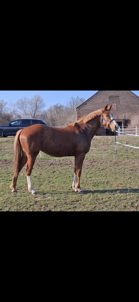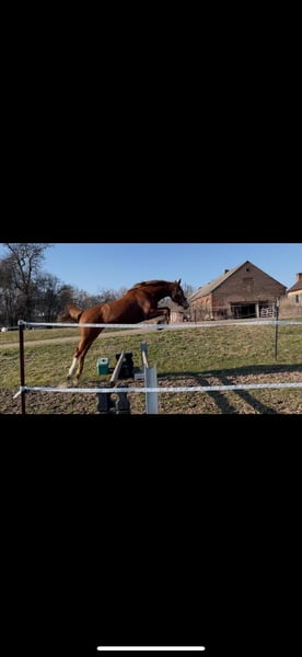2 jährige Stute von Glasgow van't Merelsnest x Balou du Rouet x Camax L x Cornet Obolensky sucht ein neues zu Hause. Caramia ist bei uns geboren und in einer gemischten Herde aufgewachsen. Sie ist vollständig geimpft, entwurmt und regelmäßig dem Hufschmied vorgestellt. Sie ist im Umgang ein absolutes Schatz, total abgeklärt und unerschrocken. Das wird ein absolutes Verlasspferd und ein Mädchentraum mit blonder Mähne. Über Ihren Vater Glasgow van't Merelsnest brachte man nicht viel sagen, die Leistung der Nachkommen sprechen für sich. Ihre Mutter stammt ab von Balou du Rouet und ist Springpferde A und L gelaufen und hat dabei immer zuverlässige Nullrunden gedreht. Ihre Mutter hat eine Stutenleistungsprüfung abgelegt und bekam im Freispringen eine 9.5 auf ihr Vermögen und eine 9.0 auf ihre Springmanier.