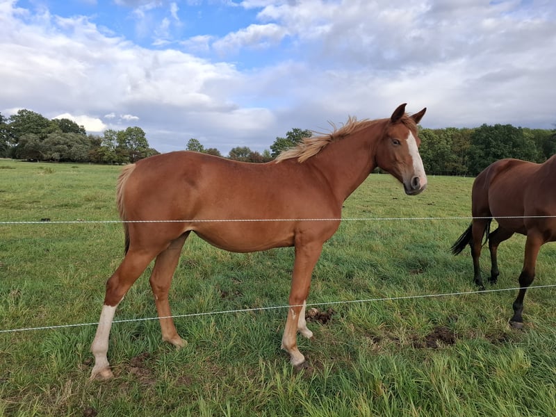 Z powodu braku miejsca sprzedaję moją prawie 2-letnią klacz z dużym potencjałem, która trafi w dobre ręce. Caramia dorasta w małej stadzie z młodymi końmi i matkami hodowlanymi. Jest regularnie prezentowana u kowala i jest bardzo przyjazna. Jej ojcem jest Glasgow van't Merelsnest, a matką jest klacz pochodząca od Balou du Rouet z potomstwem Balou du Rouet × Camax L × Cornet Obolensky. Urodziła się 3 maja 2024 roku i obecnie ma wzrost ok. 157 cm.