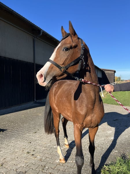 Unfortunately, due to a pasture accident during foalhood, he is being offered at a significantly reduced price. (Hahnentritt pattern) From my own experience, this may potentially improve again over time. Since foalhood, his condition has already improved with growth and movement. For interested breeders: Top Holsteiner dam line Licensed stallions and internationally successful offspring at 16.1 hh Please feel free to contact me at 015256833108 if you're interested.