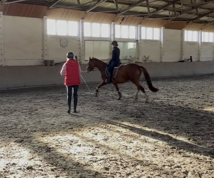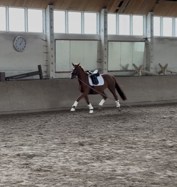 Westfalen-Stute, Fuchs, Endmaß ca 165 cm Zum Verkauf steht eine vielversprechende, dreijährige Stute von Depeche Mode aus einer Rockwell-Mutter. Diese junge Stute überzeugt besonders durch ihr charmantes Wesen und ihre Lernbereitschaft. Sie überzeugt nicht nur optisch, sondern vor allem durch ihren Charakter. Dabei ist stets freundlich, nervenstark und neugierig. Sie besitzt drei sehr gute Grundgangarten. Mit aktuell ca. 1,60 m Stockmaß steht sie noch voll in der Entwicklung. Ihr korrekter Körperbau und das energisch abfußende Hinterbein bilden eine solide Basis für den weiteren sportlichen Werdegang. Sie bringt alles mit, um ein toller Sportpartner zu werden: Vermögen, eine gute Abstammung und ein gutes Interieur. Im täglichem Umgang ist sie sehr lieb, unkompliziert, klar im Kopf und absolut kinderfreundlich. Sie kennt das putzen, alle 4 Hufe heben und die Arbeit an der Longe. „Schnatti“ wird gerade behutsam Angeritten. Sie lernt sehr schnell, ist dabei fleißig und entspannt. Sie ist herdenverträglich und lebt derzeit mit Stuten und Wallachen zusammen. Natürlich wurde sie regelmäßig geimpft und entwurmt und steht absolut brav beim Hufschmied (Barhufer). "Schnattis" Vater Depeche Mode ist ein Bewegungspferd, das mit einem raumgreifenden Ablauf aufzufallen weiß. Dies präsentiert er u. a. eindrucksvoll als Aktionstraber bei den Hengstparaden. Darüber hinaus zeigt sich der Damon Hill–Sohn stets leistungsbereit und charakterstark. Ein herausragendes Ergebnis erzielte Depeche Mode bei seinem 70-Tage-Test in Neustadt (Dosse) 2010 mit einer dressurbetonten Endnote von 8,4 –dem zweitbesten Ergebnis der Prüfung. Dabei wurde er für seine Rittigkeit vom Fremdreiter mit einer 9,25 belohnt. Depeche Mode kann zahlreiche Nachkommen mit Erfolgen in Reitpferde- und Dressurprüfungen aufweisen. Preis: 10.000€-15.000€ Standort: Schönwalde-Glien Kontakt: Antje Nitzschmann, 0170/48 12 889