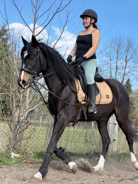 Typvolle 3-jährige DSP-Stute von Belantis II – Prämienfohlen, angeritten, brav im Umgang Zum Verkauf steht eine sehr elegante und moderne 3-jährige Deutsche Sportpferd Stute mit hervorragender Abstammung (Belantis II x Estobar NRW). Die Stute wurde als Fohlen prämiert und überzeugt durch ihre Qualität, ihren korrekten Körperbau sowie ihre überdurchschnittlichen Grundgangarten. Sie ist bereits schonend angeritten, läuft sicher unter dem Reiter und wurde auch im Gelände geritten. Dabei zeigt sie sich stets brav, unkompliziert und lernwillig. Sie ist verladefromm, kennt den Hufschmied, ist regelmäßig geimpft und gibt artig alle vier Hufe. Im täglichen Umgang ist sie sehr menschenbezogen, verschmust und absolut freundlich – kein Beißen oder Treten. Mit einem derzeitigem Stockmaß von ca. 1,67 m bringt sie ideale Voraussetzungen für den Dressursport mit. Sie ist aktuell hinten überbaut mit 1,70m und befindet sich noch im Wachstum. Geschätztes Endmaß ca 175/178. Ein tolles Nachwuchspferd für ambitionierte Reiter oder zur weiteren Ausbildung im gehobenen Dressurbereich. Preis: 13.900 € VB Nur in fördernde Hände abzugeben. Die Abgabe erfolgt aus gesundheitlichen Gründen der Besitzerin. Es ist kein Notverkauf! Für das Probereiten fällt eine Reitgebühr von 30€ an, welcher mit dem Kaufpreis bei Kauf verrechnet wird.