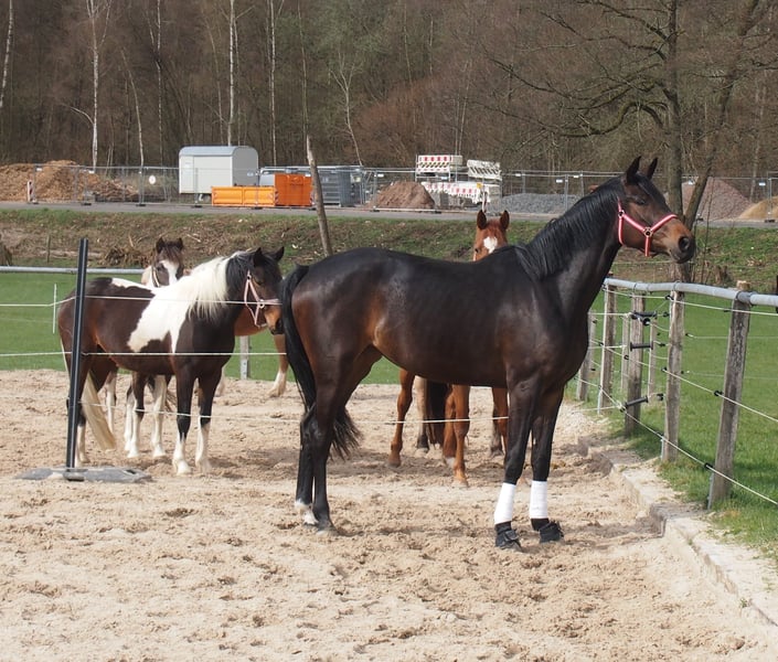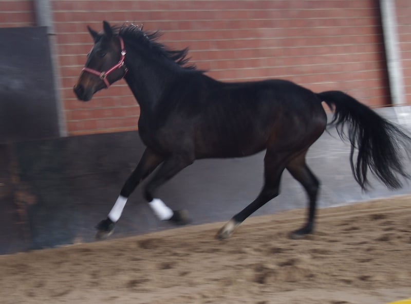 Onze 3-jarige merrie van Belantis II is een zeer charmant en prachtig paard. Ze combineert aanwezigheid en elegantie met een uitstekende beweging. Ze komt uit de succesvolle fokkerij van Bernd Schäfer en is hier in een gemengde kudde/familieverband onder de beste omstandigheden vakkundig opgevoed. Onze paarden groeien op in het Hessisch bergland, waardoor ze zeker en zeer goed uitgebalanceerd zijn. De diervriendelijke verzorging heeft haar een gezonde lichamelijke ontwikkeling, een goede en correcte basis en een evenwichtig sociaal gedrag opgeleverd. Deze bijzonder mooie merrie beschikt over een zeer ruime stap, een goede, regelmatige, losse en schwungvolle draf. Wat vooral opvalt, is de uitzonderlijk goede galop, die goed ondergesprongen wordt aan de longe en in de cirkel uitbalanciert is. In het vrije lopen toont ze een ruime en uiterst ruimte-innemende galop, die ze veilig kan variëren en op klein terrein snel en zonder haast kan wenden. De beproefde moederlijn heeft al paarden voortgebracht die in alle disciplines succesvol zijn op S-niveau. Via de moeder komt het beproefde Edelblut en ze kan al nakomelingen voorleggen die succesvol zijn in M-dressuur. Vanwege haar uitzonderlijk goede galop kunnen wij ons voorstellen dat deze merrie ook haar weg in de veelzijdigheid kan vinden – vooral omdat de volle zus van de moeder vóór haar fokkerijcarrière succesvol was in de veelzijdigheid. De moeder en andere nakomelingen kunnen graag bij de fokker bekeken worden. In de dagelijkse omgang toont ze zich knuffelig, makkelijk in de omgang, nervensterk en absoluut braaf – een paard dat je meteen sympathiek vindt! Een indrukwekkende, liefdevol opgevoede jonge merrie met topfok, uitstekende afstamming en veelbelovende veelzijdige toekomst. Of het nu als dressuurpaard met toekomst is, als krachtige partner voor de veelzijdigheid, of als nervensterk paard voor de amateur. Deze merrie overtuigt door hoge kwaliteit, uitstekend karakter en hart! Op verzoek kan het paard ook aangezadeld en eventueel verder opgeleid worden. Bij verdere opleiding stijgt vanzelfsprekend de prijs. Informatie uitsluitend via WhatsApp of telefonisch: 0174-9788997.