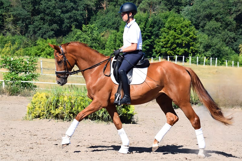 For sale is a beautiful and uncomplicated mare with three very good basic gaits. The very expressive canter is particularly noteworthy, as well as the relaxed trot, which is endowed with a lot of mechanics. She is easy to ride and has plenty of go. In handling, she is always friendly and easy to manage. Sire Shu Fu, at only 8 years old, is already successfully competing at the advanced level and has the coveted Sezuan as his father. His daughter, for sale here, is both in demeanor and movement pattern his exact likeness. The dam, state premium mare Flockentanz, was the winner of her mare registration at three years old and completed an outstanding mare performance test in Neustadt/Dosse, scoring 8.5 for trot, canter, and rideability. A current radiographic examination will be conducted in the coming weeks. The dam had three-year-old radiographs, including the back, with no findings. Due to her age, the mare is not suitable for beginners. Experienced hands with horse knowledge are desired.