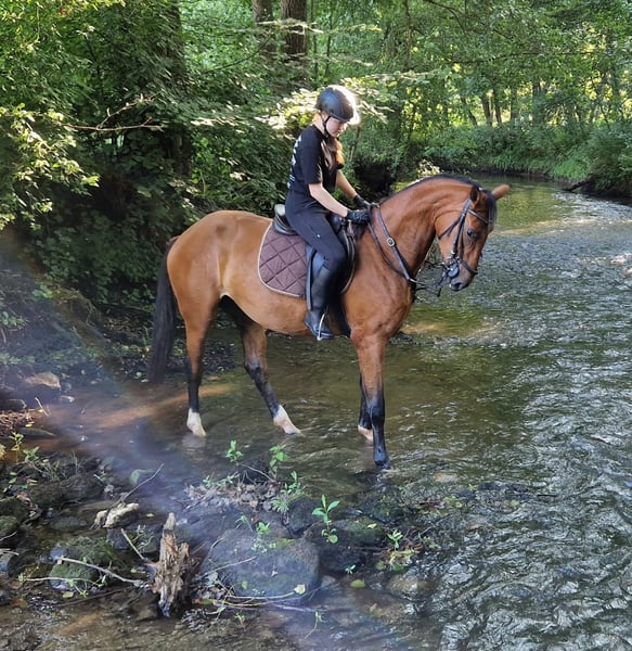 Hannowerski / KWPN klacz Z 2022 łagodnie osiodłana 172 cm wychowana w dobrych warunkach, nieskalana i niewykorzystywana... Ojciec Carnegie Hannoveran https://youtu.be/xN4rwkLPf-8?feature=shared Matka KWPN Zdjęcia w załączeniu. Nieskazitelna klacz, która chce zrobić wszystko dobrze dla swojego człowieka. Piękna, zrównoważona budowa. Przyjazna dla kowala Szkolenie w zakresie transportu w toku. Widzi się w ambitnym sporcie skokowym, już skakała w terenie. W pełni zdrowa... weterynarz? ... co to jest? Ostatnie dwa zdjęcia to ojciec i matka. Zajrzyj... umów się ze mną na spotkanie.