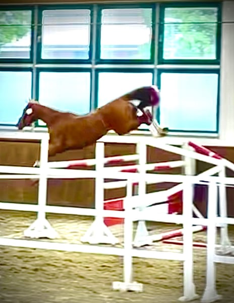 Se ofrece una yegua roana de aspecto deportivo, llamativa, con un marcado patrón de color y excelente predisposición para el salto. La yegua de tres años desciende de Oganero P y, por parte de madre, proviene de una línea probada de Prinz Romadour – Prinz Oldenburg. La potranca está inscrita en el libro genealógico del PZVBA. Completó su prueba de rendimiento para yeguas con una sobresaliente puntuación global de 8,01 (puesto 6 de 23). En el trato diario, la yegua muestra una actitud cercana a las personas, es fuerte de nervios y muy dispuesta a trabajar. Incluso en campo, a pesar de su juventud y poca experiencia, se muestra tranquila y segura. Un talento en ciernes para deporte, ocio y/o reproducción. Por una pequeña imperfección, se ofrece a un precio muy reducido y solo en Teléfono: 0179 / 754 2321