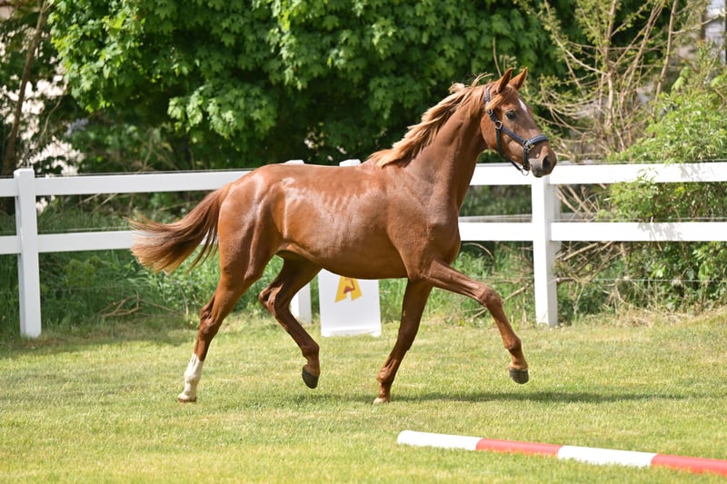 Mit Va Bella B präsentiert sich eine äußerst typstarke und bewegungsstarke zweijährige Stute mit besonderer Abstammung. Vater Va Bene ist aktuell in aller Munde aufgrund seiner herausragenden Fohlenjahrgänge und auch seinen eigenen Erfolgen in der Dressur S***. Mutter Staatsprämienstute Florencia B war Freilaufchampionesse, SLP-Reservesiegerin und gewann Bronze beim Verbandschampionat der 3jährigen Reitpferde. Sie war nominiert zum Bundeschampionat. Sie hat zwei gekörte Brüder und weitere Schwestern wurden ebenfalls mit Staatsprämie ausgestattet. Halbschwester StPr Raffaela B war SLP-Siegerin, Dressurpferde M erfolgreich und wurde Verbandschampionesse, ihr Sohn DSP Fürstano B war in 2022 DSP-Youngster Dressurchampion und ist aktuell Grand Prix- siegreich. Großmutter StPr Patra B legte ihre SLP mit 8,52 ab und war Dressurpferde L erfolgreich. Ihr Bruder Ravel v. Rubinstern Noir war S-Dressur erfolgreich. Aus dem Mutterstamm mehrere gekörte Hengste und S-Dressur erfolgreiche Pferde. VIDEO kann auf Anfrage per WhatsApp verschickt werden.
