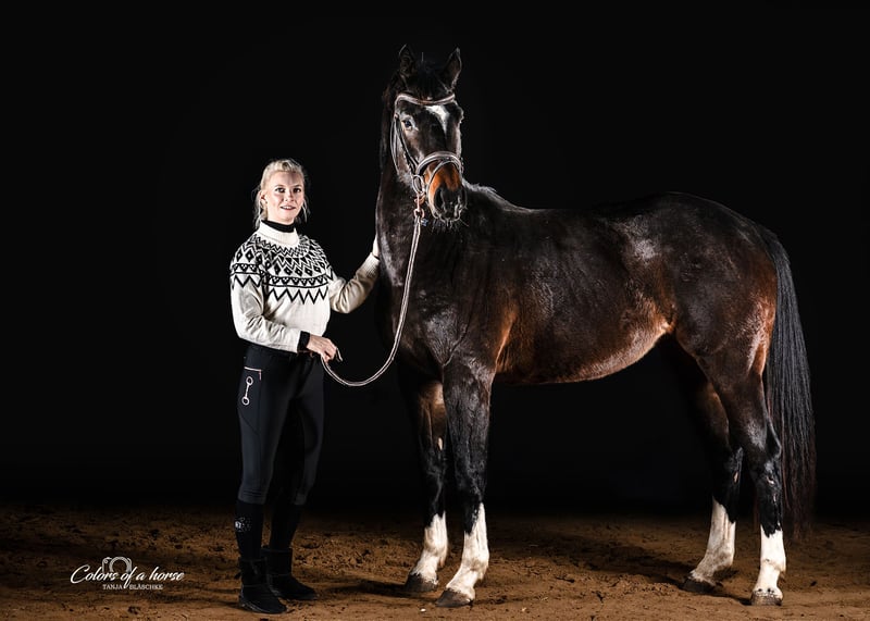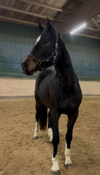 Aufgrund finziellem Engpass suche ich ein gutes Zuhause für meine selbstbezogene Stute. Nach dem Absetzen durfte sie ihre Kindheit in der Marbacher Fohlenaufzucht genießen. Dort war sie weder ranghoch, noch rangniedrig, hatte nie Probleme und fiel nie auf. Sie ist verschmust, lieb und zutraulich. Seit Oktober ist sie bei mir und wohnt in einer schönen Paddockbox. Auch hier zeigt sie sich unauffällig in der Koppelherde und kommt mit jedem klar. Sie ist regelmäßig geimpft und entwurmt worden, kennt Hufschmied und Hängerfahren. Momentan läuft sie barhuf. Da sie noch im Wachstum ist, habe ich hauptsächlich vom Boden mit ihr gearbeitet. Sie kennt Longe, Trense, Sattel und auch den Reiter trägt sie brav durch die Bahn. Eine AKU habe ich bisher nicht machen lassen. Sie war aber auch noch nie krank oder hat irgendwelche Lahmheiten gezeigt. Sie ist ein ehrliches Pferdchen, aber nicht die mutigste. Aufgrund ihres Alters und Ausbildungsstandes wird sie nur an Leute mit Jungpferdeerfahrung verkauft.