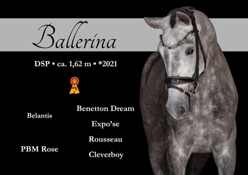Dear Interested Parties, For appointment arrangements for trial rides, please send me a WhatsApp message. For further questions, I am available during the day via WhatsApp, and you can best reach me by phone between 4 PM and 7 PM. I look forward to hearing from you. www.angelina-devittorio.de ⭐️Ballerina⭐️ Age: 4 years (2022) Height: currently about 1.62 m, still growing Pedigree: Belantis x Rousseau Training Level: backed Vet Check: Good X-ray images available For sale is an outstanding dressage prospect with excellent quality. Ballerina impresses with her exceptional basic quality in all three gaits! This stunning gray mare presents herself as very well-behaved and clear-headed despite her young age. With enormous expression and an excellent work ethic, this horse shows impressive willingness to learn. A promising dressage prospect who wants to do everything right and has the potential for the big arena. She is age-appropriate, freshly backed, and always eager to please, absolutely clear-headed and already very pleasant to ride. She is also a true treasure in handling. Absolutely suitable for amateurs; of course, due to her age and training level, experience with young horses is a prerequisite. An absolute dream horse with outstanding quality and a clear-headed, well-behaved character. ⚜️Tel: 0171-3438949 ⚜️a.devittorio@web.de ⚜️https://www.ehorses.de/angelinadevittorio Facebook and Instagram Angelina De Vittorio