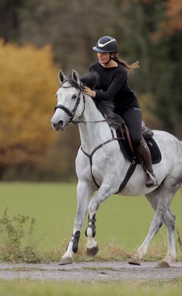 Classy Girl A 4-year-old German mare with excellent lineage – Casillas x Cosmopolitan Classy Girl is a stunning young mare with outstanding bloodlines and top potential for show jumping. She has just been backed and already impresses with her good rideability, eagerness to learn, and a wonderful temperament. She always aims to please her rider, learns incredibly quickly, and is simply a joy to ride. It is a real pleasure to sit on her – very soft in the mouth, already consistently on the bit, and always motivated, focused, and exceptionally well-behaved! Within just one day, she understood flying changes and performs them confidently on both sides. She also shows her best at the in-hand warm-up, always eager to move to the other side and possesses great awareness. She already handles small courses confidently. In the arena, she mastered her first outing with flying colors – all alone, without any company. Neither tractors nor cows could ruffle her; she remains calm and fearless in every situation. Classy Girl is a real diamond in the rough, with the potential to become a superstar with the right rider. She possesses a lot of talent and ambition and has everything needed for a future top-performing show jumper. Thanks to her manageable size, light-footedness, and balanced nature, she will surely move swiftly and nimbly through the course. Trial rides available at any time. €30 Inquiries exclusively by phone or WhatsApp: 📞 +43 680 50 11366