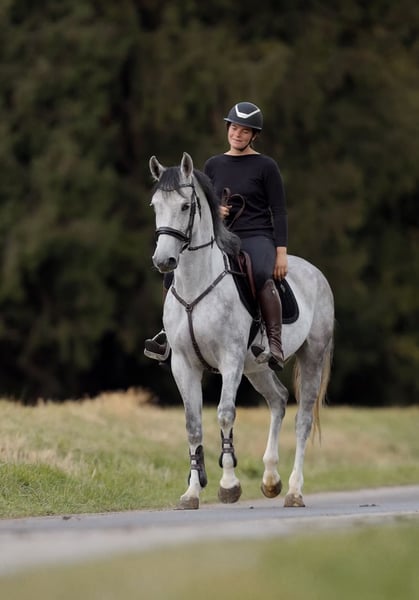Classy Girl Een elegante Duitse merrie van 4 jaar met top-afstamming – Casillas x Cosmopolitan Classy Girl is een prachtige, jonge merrie met uitstekende afstamming en de beste aanleg voor de springsport. Ze is net aangezad en overtuigt nu al met haar goede rijbaarheid, leergierigheid en haar geweldige karakter. Ze wil haar ruiter altijd behagen, leert ongelofelijk snel en maakt gewoonweg plezier. Het is een waar genoegen om haar te rijden – zeer fijn in de mond, staat al stevig aan het bit en toont zich altijd gemotiveerd, geconcentreerd en buitengewoon braaf! Na slechts één dag begreep ze de vliegende wissel en springt deze veilig aan beide zijden. Ook tijdens het warmrijden toont ze haar beste kant, ze wil altijd naar de andere zijde en heeft veel overzicht. Kleine parcoursen voltooit ze al vol vertrouwen. Ook in het terrein heeft ze haar eerste buitenrit met glans volbracht – helemaal alleen, zonder begeleiding. Noch tractoren noch koeien konden haar imponeren – ze blijft kalm en onbevreesd in elke situatie. Classy Girl is een echte ruwe diamant die met de juiste ruiter uit kan groeien tot een ster. Ze beschikt over veel talent en ambitie en heeft alles wat een toekomstige wedstrijdpaard in de springarena nodig heeft. Met haar compacte formaat, lichtevoetigheid en evenwichtige karakter zal ze zeker eens snel en wendbaar door het parcours gaan. Proefritten mogelijk op elk moment. €30 Voor vragen uitsluitend telefonisch of via WhatsApp: 📞 +43 680 50 11366