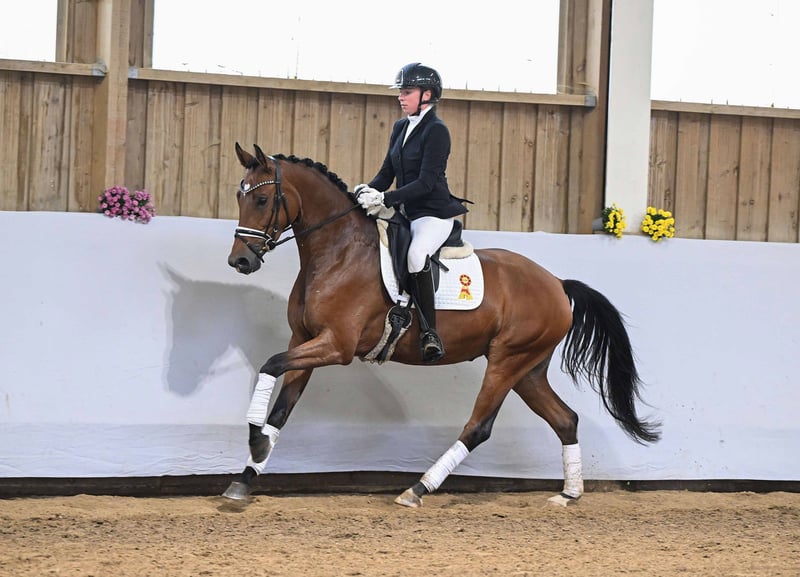 Hier geht's zur Kollektion und Online-Registrierung: https://auktion.pzvbw.de/auctions MwSt. 0 % Bewegungsopulenz, Ehrgeiz und Sportlichkeit vereinen sich bei diesem Toptalent auf ideale Art und Weise. Mehrfach siegreich in Reitpferde- und Dressurpferdeprüfungen der Klasse A, qualifiziert zum Finale des Gert-Gussmann-Cups 2025. This top-class talent combines opulent movement, ambition and athleticism in an ideal way. She is winner of several riding horse and young horse dressage classes. Also qualified for the 2025 Gert Gussmann Cup final.