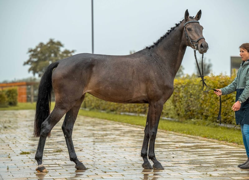 Here you can find the collection and online registration: https://auktion.pzvbw.de/auctions VAT 7.8% A young horse that is easy to ride and light-footed, with a clear head, uncomplicated nature, and excellent riding comfort. The dam was successful up to medium (M) level and has eight siblings that have also achieved success at medium and advanced (S) levels. Already placed in A level show jumping competitions for young horses.