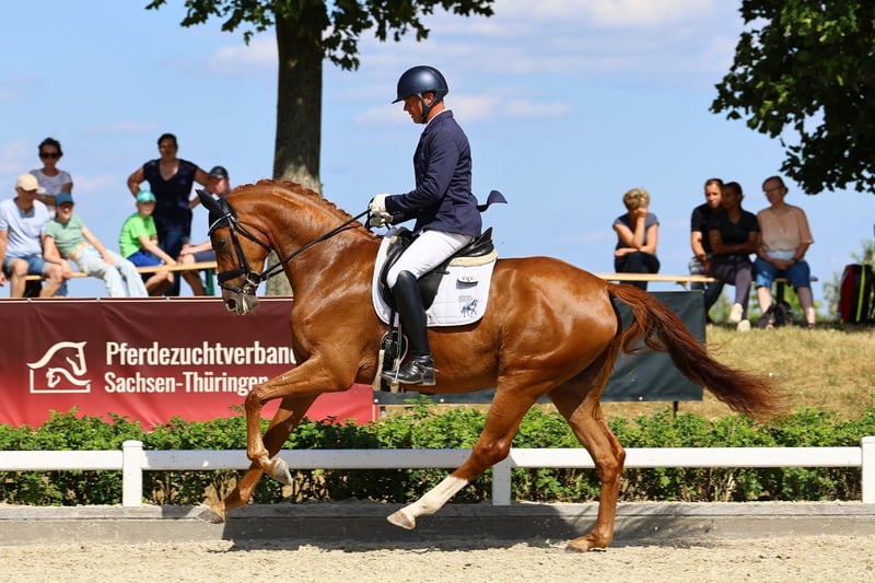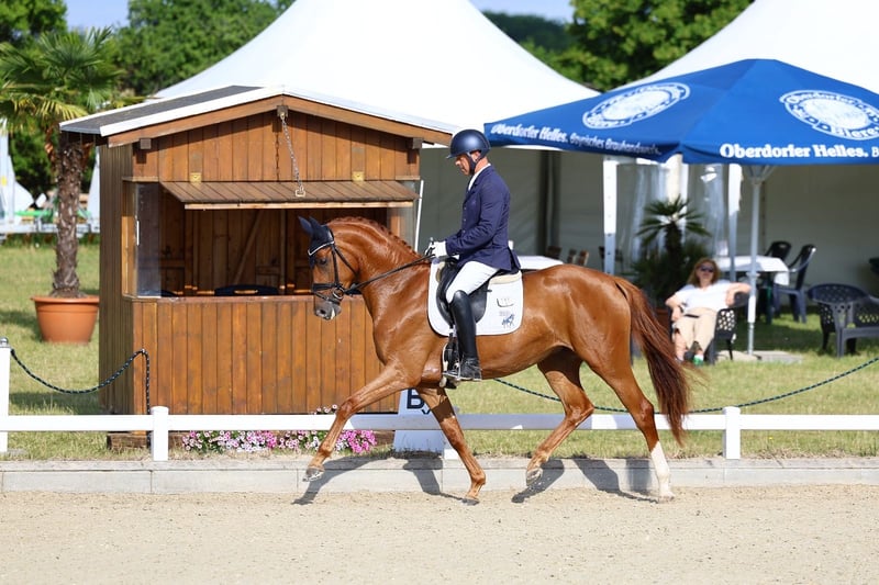 Sole Gold ist eine super rittige Stute, abstammend von Toto Gold. Ihre Mutter, Samba‘s Lady, war selbst Staatsprämienstute und brachte mehrere sporterfolgreiche Nachkommen und Staatsprämienstuten. Somit eignet sich Sole Gold auch bestens für die Zucht. Sie bringt alle Reitpferdepoints mit die ein modernes Sportpferd besitzen sollte. Sole Gold konnte bereits letztes Jahr Erfolge in Reitpferdeprüfungen sammeln. Sie wurde nun altersgemäß weiter ausgebildet, somit steht der Turniersaison 2026 nichts im Weg. Anfragen und Vidoes bitte direkt per WhatsApp oder Telefon an +4915256809321