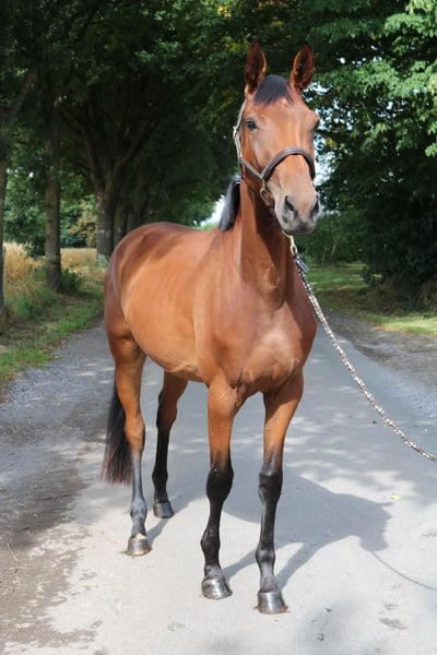 Vente d'une jument sport allemande – Idéale pour la dressage ! À vendre, une élégante et talentueuse jument sport allemande née en 2022. Avec une taille impressionnante de 1,68 m, elle offre la stature parfaite pour les cavalières et cavaliers ambitieux. Son pelage brun met en valeur son apparence attrayante. Cette prometteuse jument de dressage se distingue par son allure élégante, la qualité de ses mouvements et son potentiel pour l’avenir. Elle est bien dressée, attentive et montre déjà ses premiers pas en allures de base, ce qui en fait une candidate idéale pour débuter en dressage ou pour progresser en compétition. Elle est en bonne santé, régulièrement vaccinée et a été élevée dans le respect de son bien-être. La jument est amicale au contact et montre une grande volonté d’apprendre. Pour toute question ou information complémentaire, je reste à votre disposition. Une visite peut être organisée sur rendez-vous.
