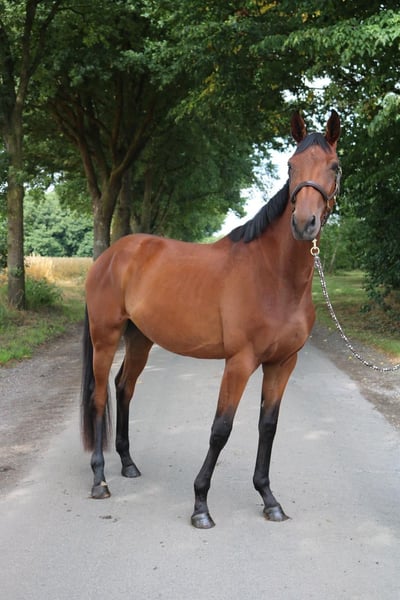 Aus liebevoller Züchterhand geben wir eine vierjährige, braune Stute aus der sportlichen Verbindung FairDeal x De Niro ab. Sie überzeugt mit viel Go, sehr gutem Interieur und einer feinen, positiven Grundeinstellung. Sie zeigt sich menschenbezogen, lernwillig und ehrlich in der Arbeit. In der Bewegung zeigt sie sich athletisch, kraftvoll von hinten und mit natürlicher Balance. Die Stute wurde altersgerecht angeritten und behutsam gefördert, kennt Halle und Platz. Ein junges Pferd mit sportlicher Perspektive und Herz, das seinen Menschen sucht - jemanden, der ihre Energie achtsam lenkt und ihren Weg begleitet.