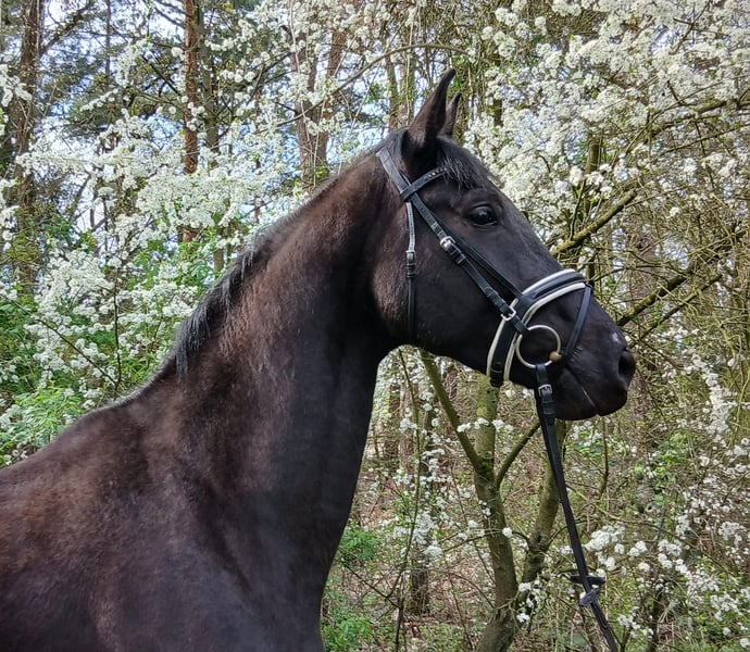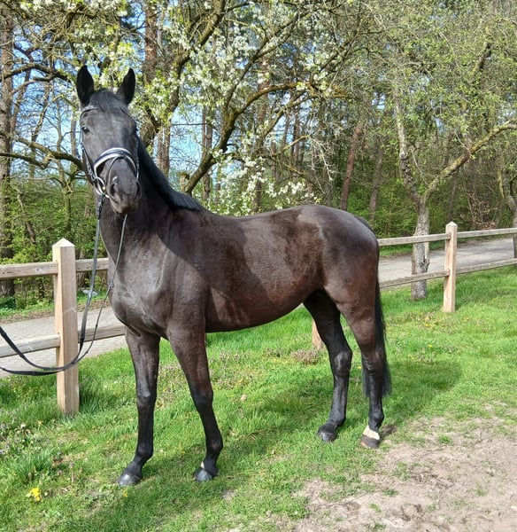 Belara is an expressive, dark bay mare bred by her breeder, raised from the start within reliable training structures. Her temperament is grounded, clear-minded, and oriented towards sustainable development. Her pedigree speaks for itself: a sister has already achieved significant success up to S* level in sport – a strong foundation to build upon. ✨ Character & Temperament Belara impresses with her calm, steady nature. She is attentive, eager to learn, and always clear in her mind. A horse that builds trust step by step and approaches her handler honestly. ✨ Her strengths at a glance: • 🖤 Dark bay mare with harmonious conformation • 🏡 Directly from the breeder – raised transparently and honestly • 🧬 Performance-oriented pedigree (sister successfully competing up to S*) • 🧠 Clear-minded, willing to learn, and cooperative • 🌿 Grounded and reliable in handling • 🤝 People-oriented and easy to handle daily • 🚛 Familiar with loading and uncomplicated in this regard • 🧲 Forging-friendly • 🎓 Appropriately in training for her age • 🏇 Potential for high-level dressage with further development ✨ Who is she suited for? For riders who value: • An honest foundation and clear development • A horse with substance rather than quick fixes • Structured training with sensitivity ✨ Her special quality Belara possesses the energy to build something sustainable. She stands for consistency, trust, and a path that may not be loud but is ultimately successful in a lasting way. Price plus statutory VAT