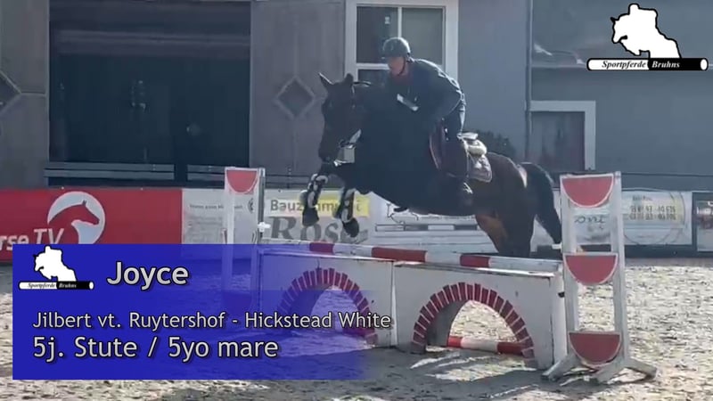 Wir bieten hier eine wunderschöne dunkelbraune Stute, die sicher 1,10m Parcours springt. Sie ist super ausbalanciert und springt sicher einen Wechsel. Joyce springt eine super Art, so dass sie sich als Hunter eignet.