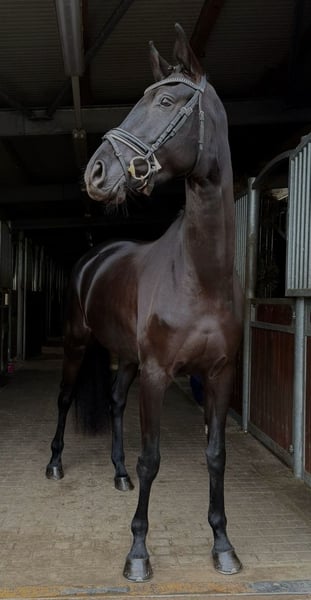 German sport horse mare for sale – elegant dark bay mare For sale is an impressive German sport horse mare, born in 2021. With her appealing basic gaits and an impressive shoulder height of 168 cm, she is truly eye-catching. This talented mare is ideally suited for dressage and impresses with her elegant appearance and friendly temperament. She has been gently backed and trained, showing great potential for the grand dressage arena. She comes directly from the breeder, has been regularly dewormed, and has been introduced to the farrier. X-rays are available, including views of the neck and back, and can be provided for inspection. If you are interested or have further questions, I am happy to assist you. A personal meeting is always possible. Please do not call anonymously, as this will prevent a callback.